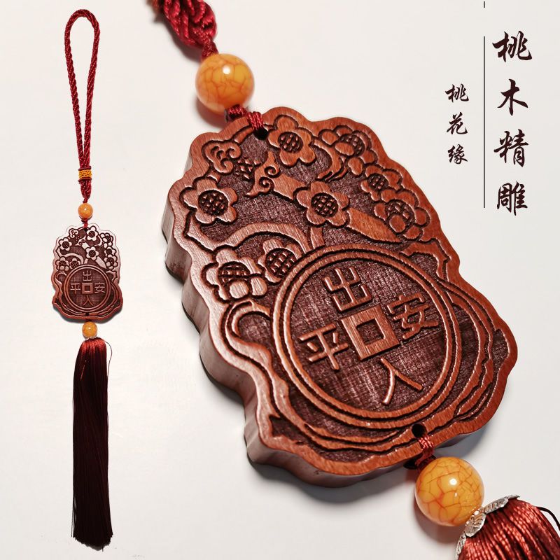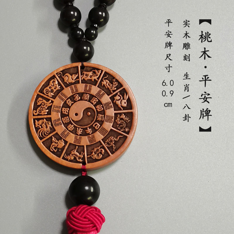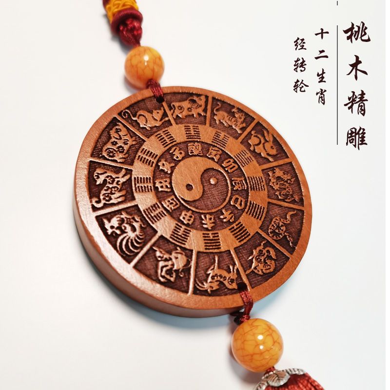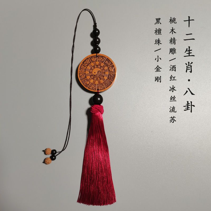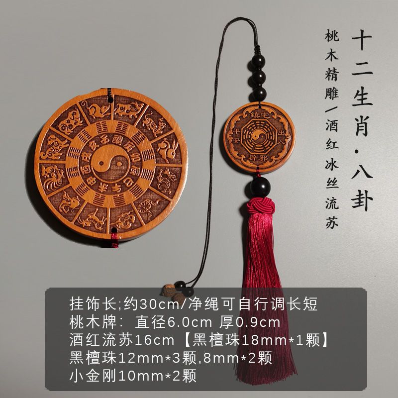 桃木八卦车挂 木雕车内挂件饰品 车吊饰挂男高档车内挂件