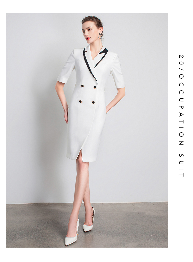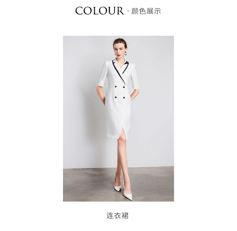 Ewy夏季新款时尚高端法式白色总裁正装白领连衣裙女士ol风