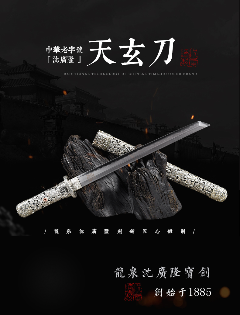 - 龙泉沈广隆剑舖创始于1885年(清光绪)位于浙江省龙泉市,是当地唯一一家“子承父业”一脉相承的中华老字号宝剑生产企业,是国家级非物质文化遗产龙泉宝剑项目保护单位,并以“天下第一剑”闻名于海内外....