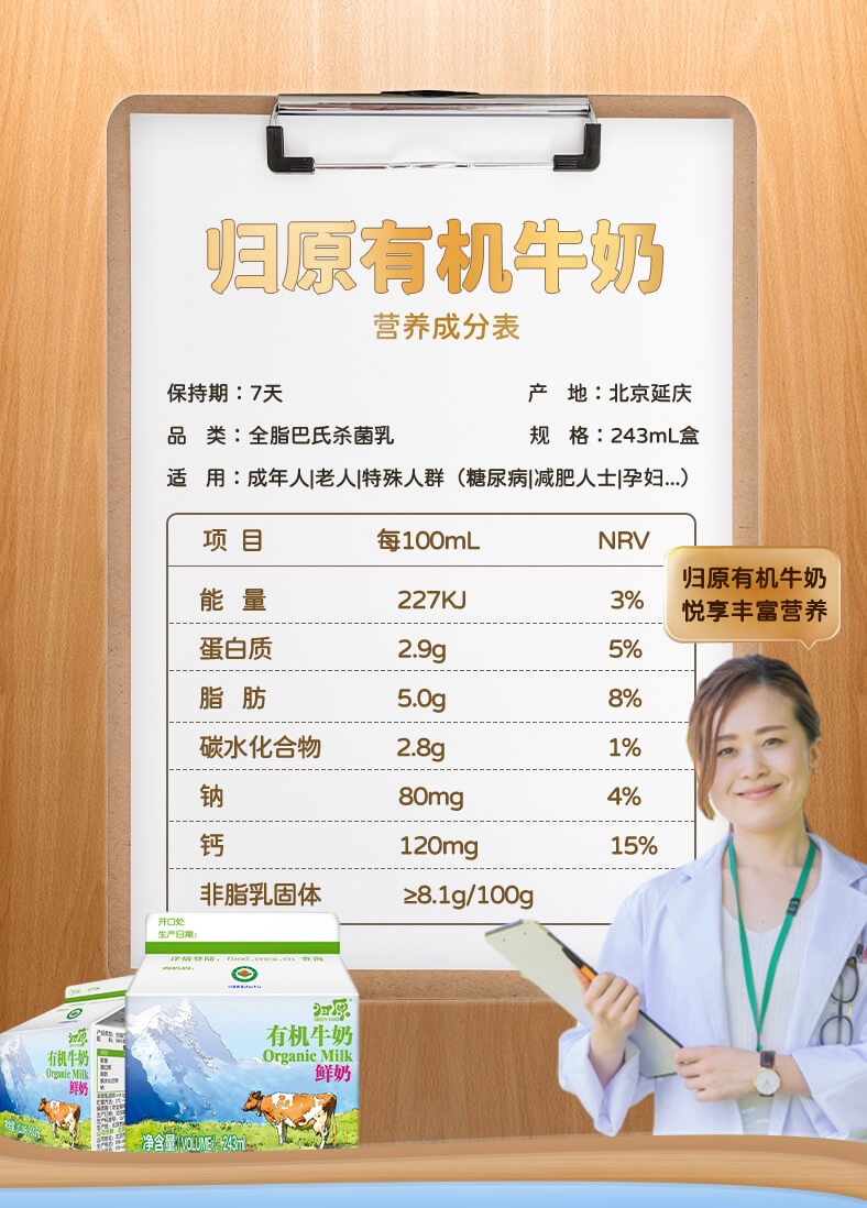 【生产方式】归原有机牛奶是从牧草种植、奶牛养殖、牛奶加工灌装整个流程都通过有机认证,保证牛奶的营养健康,营养安全超过欧盟标准。