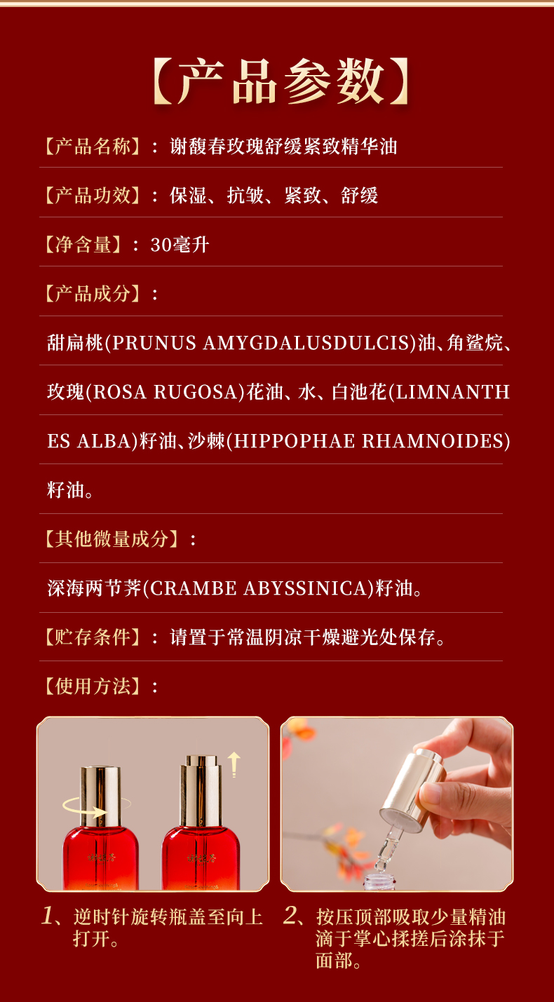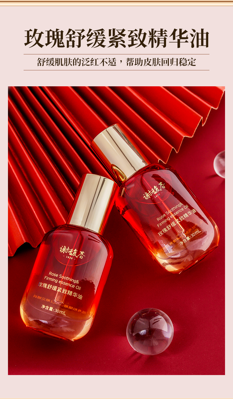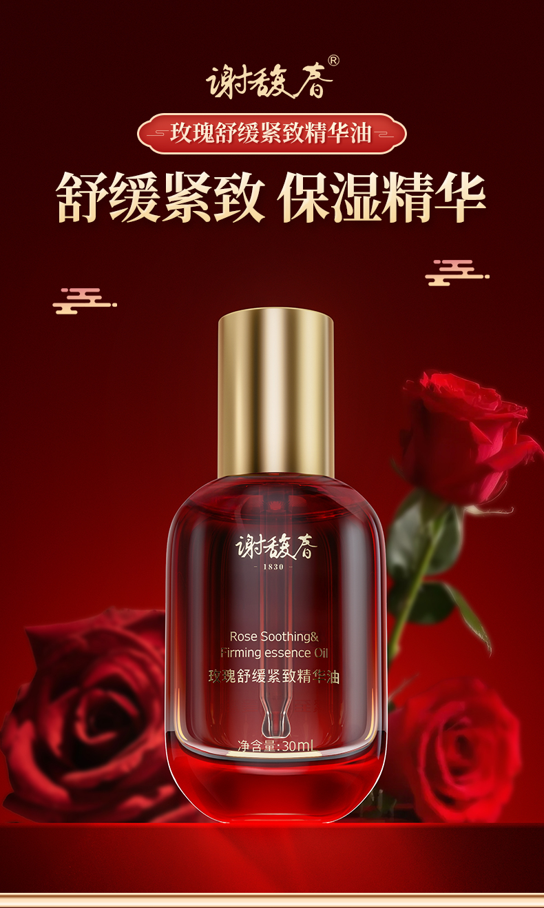 【上新买2送玉板】谢馥春玫瑰舒缓紧致精华油 面部护肤精油保湿水润