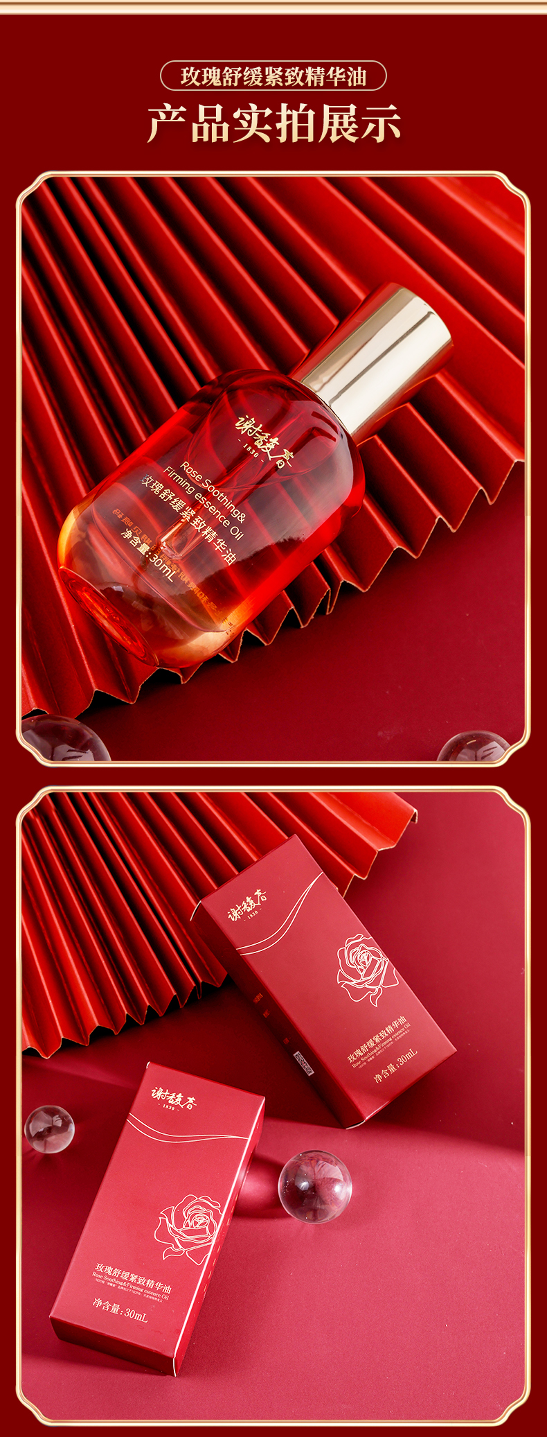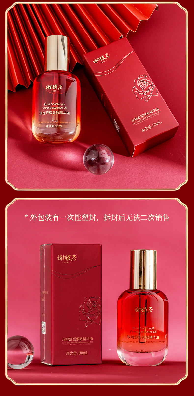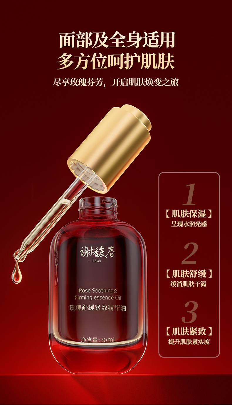 【上新买2送玉板】谢馥春玫瑰舒缓紧致精华油 面部护肤精油保湿水润