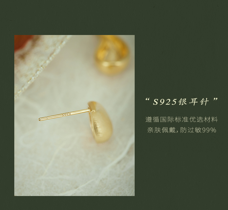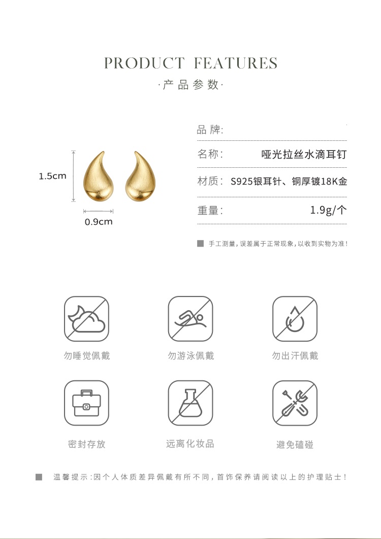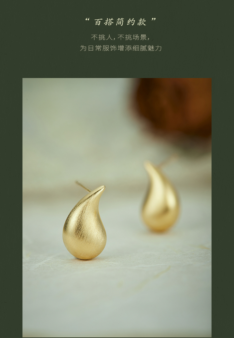 Oflye潮流饰品 哑光拉丝水滴耳钉女新款简约百搭耳环气质轻奢高级感秋冬耳饰