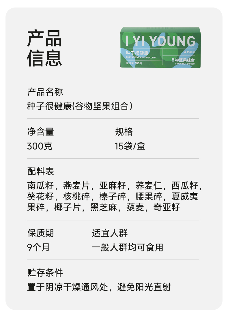 宜样|种子很健康(谷物坚果组合)300g/盒