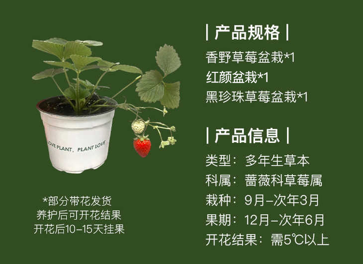 草莓盆栽3盆(品种:红颜+黑珍珠+香野)|新客福利