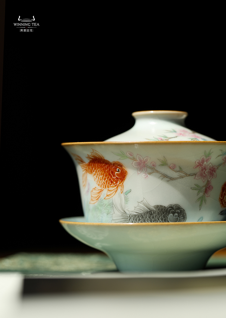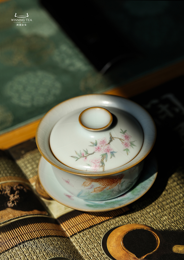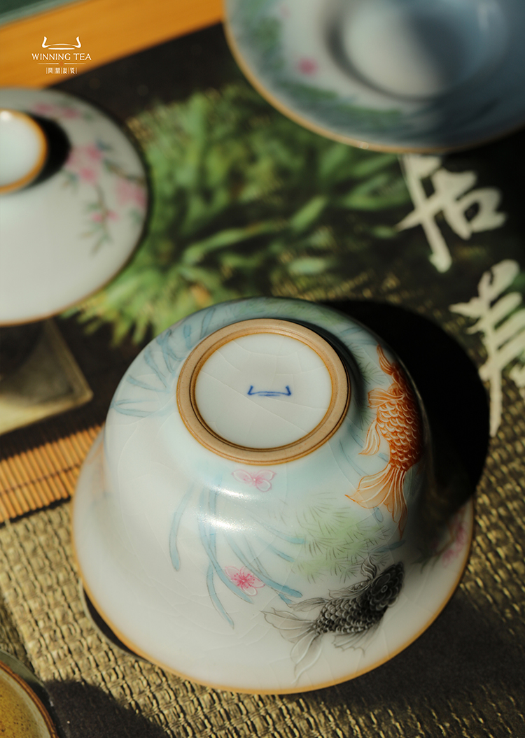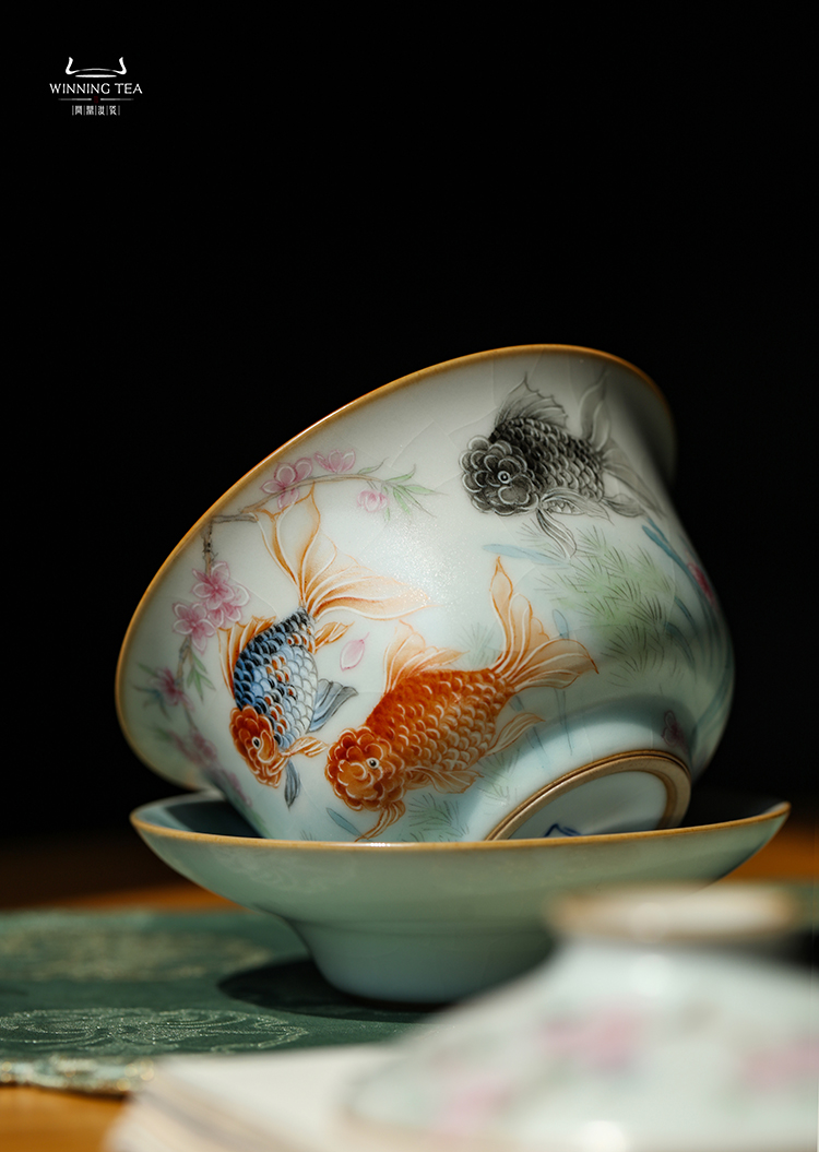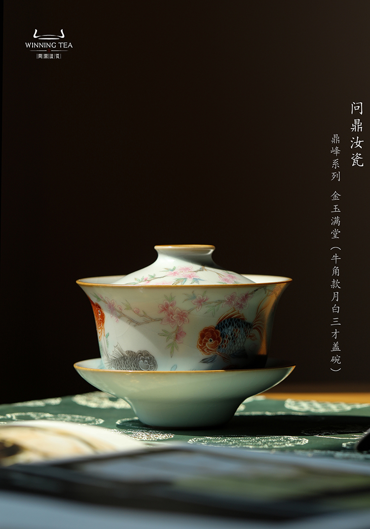问鼎汝瓷鼎峰系列月白三才盖碗(金玉满堂)