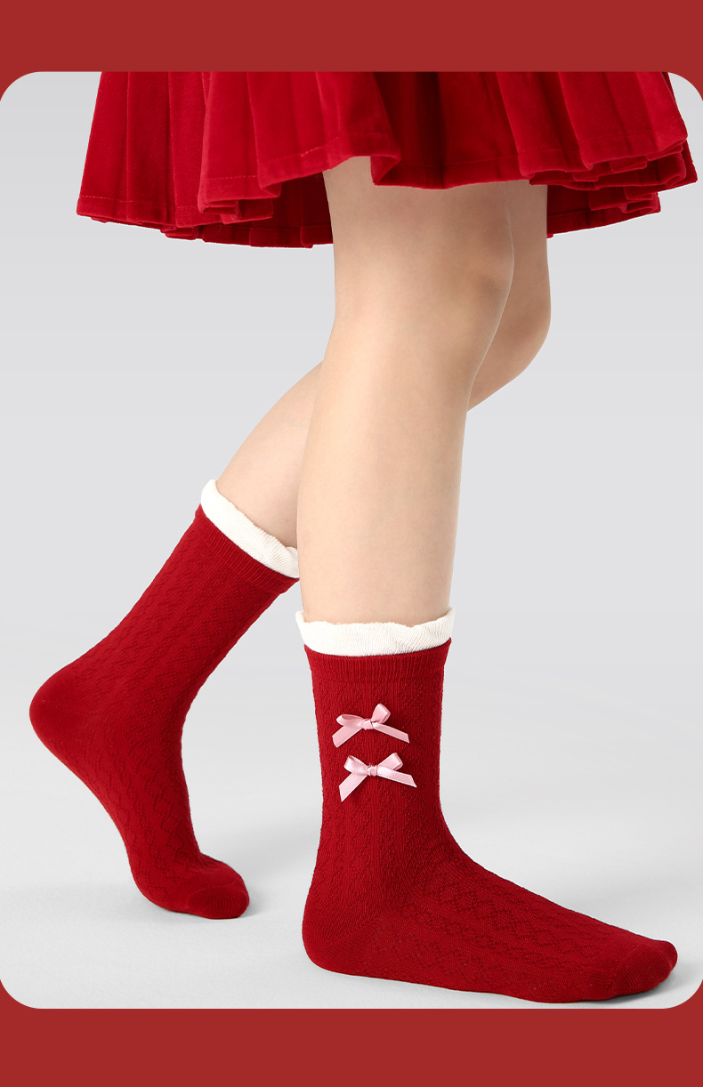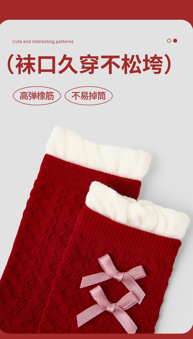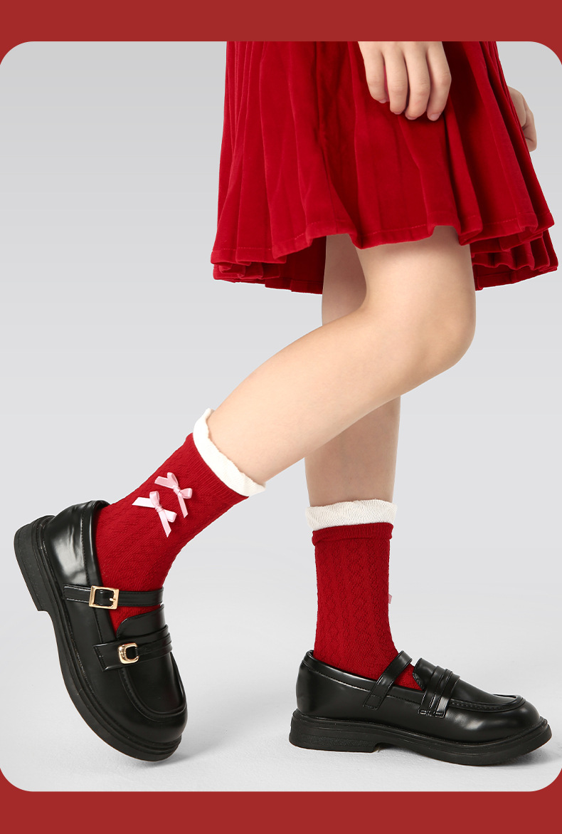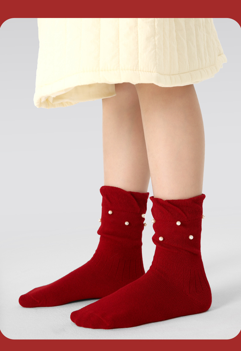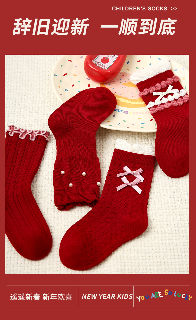 【新年快乐!少女新春新年袜~】四双装!儿童袜子 女童过年秋冬款 女孩冬季保暖本命年袜子 红色新年袜子-QQ