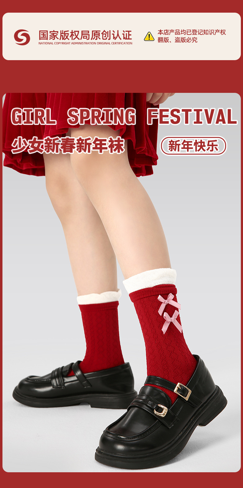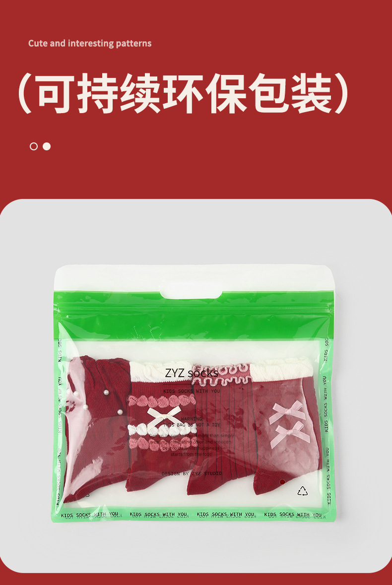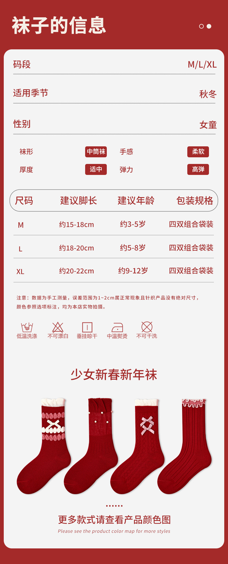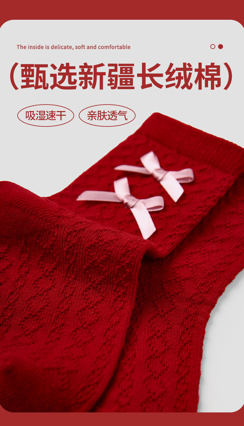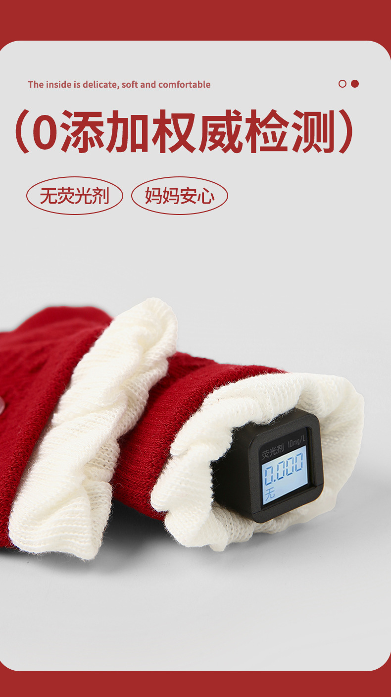 【新年快乐!少女新春新年袜~】四双装!儿童袜子 女童过年秋冬款 女孩冬季保暖本命年袜子 红色新年袜子-QQ