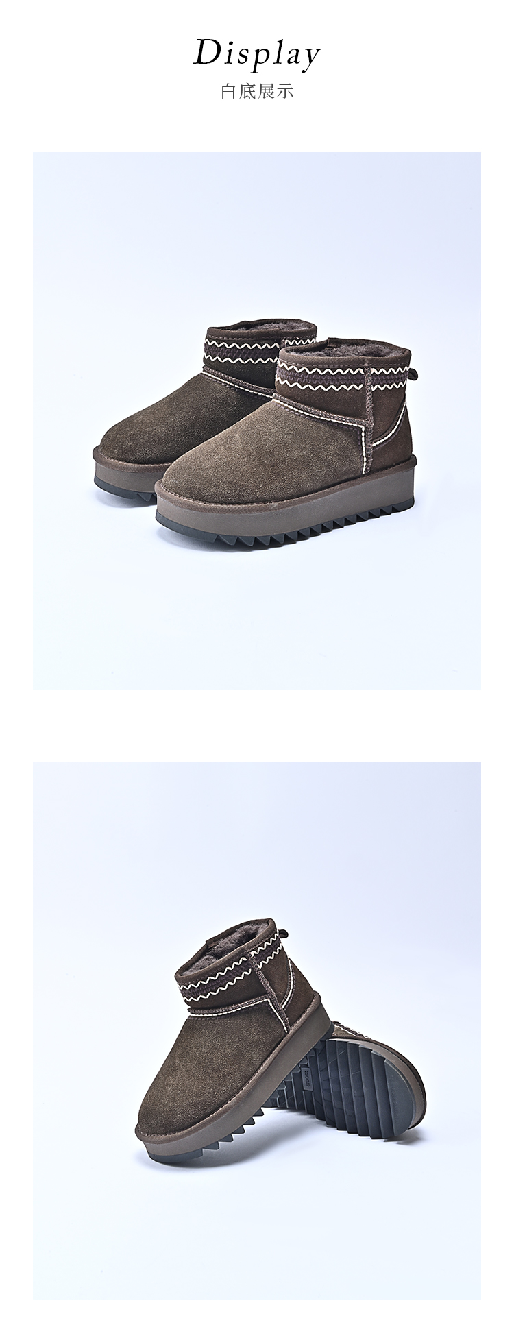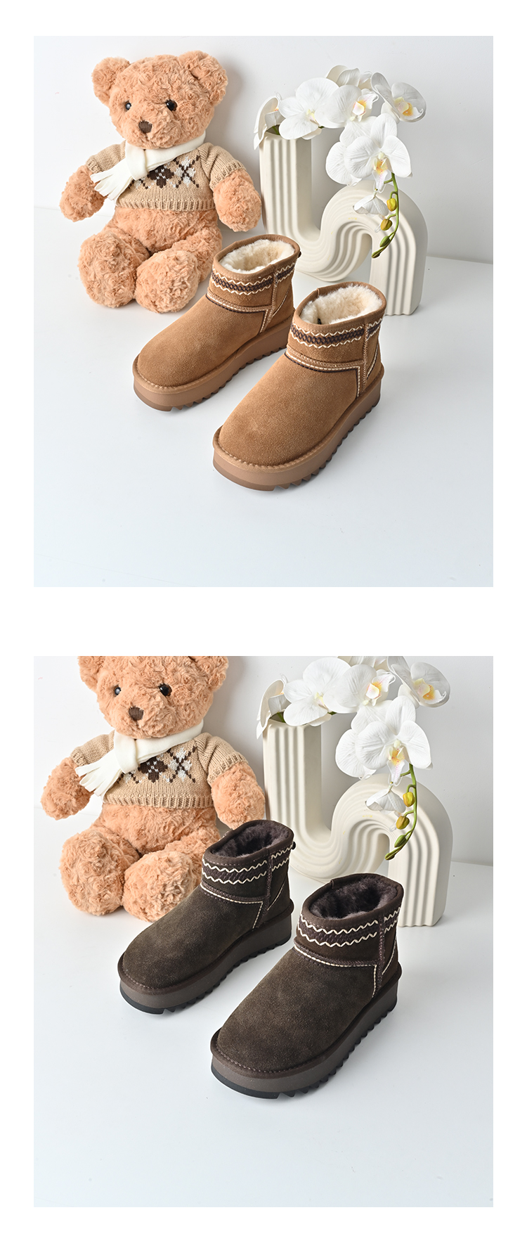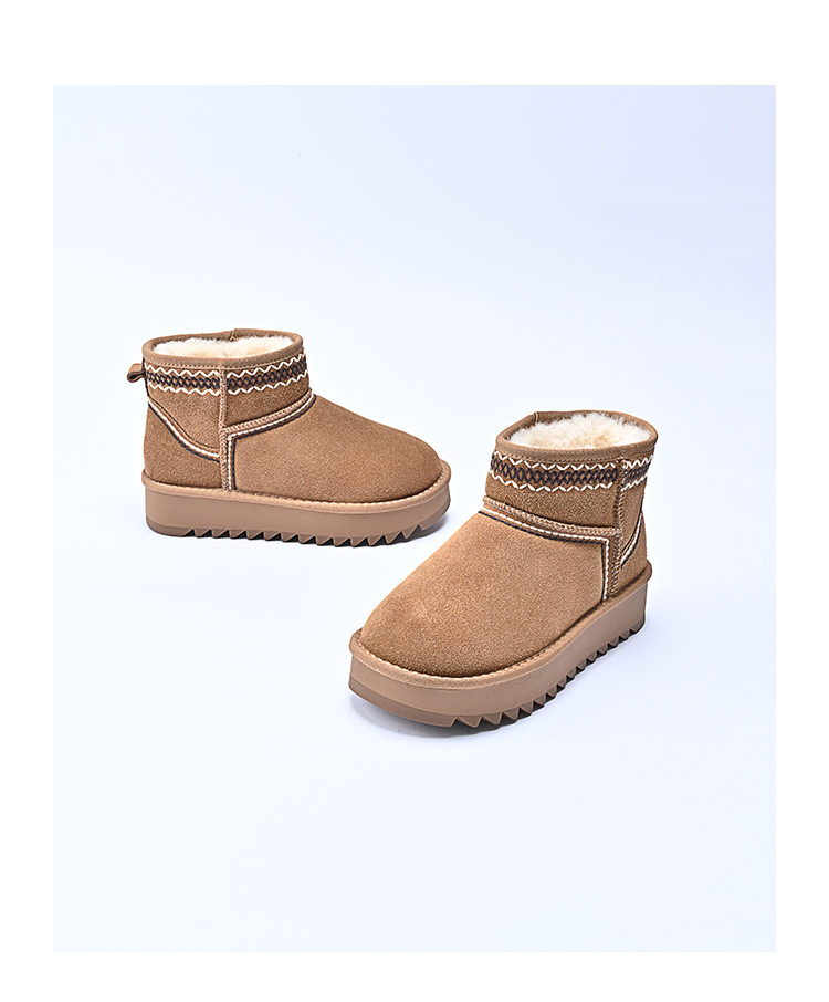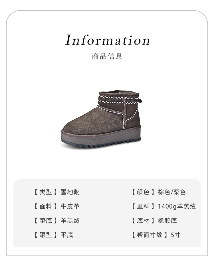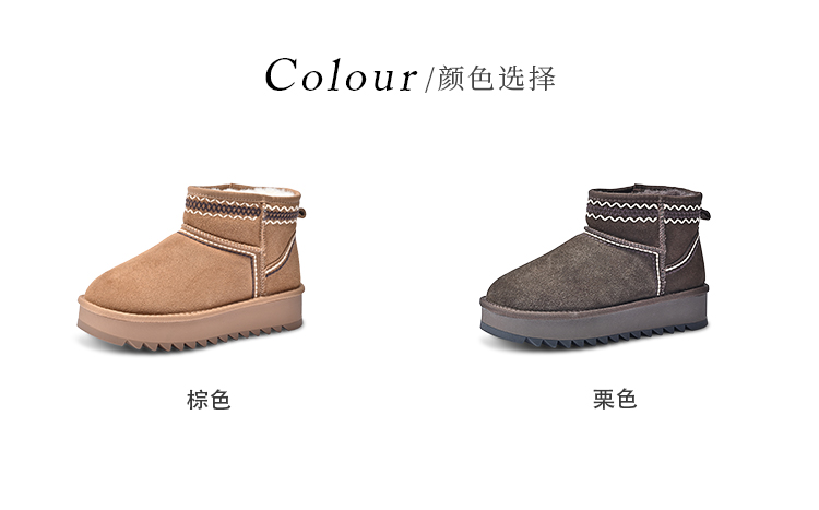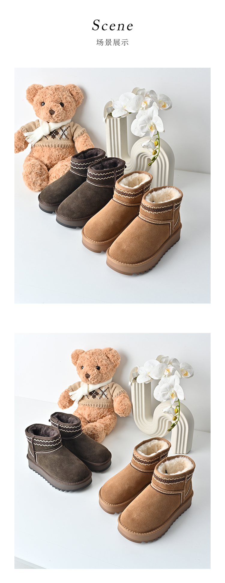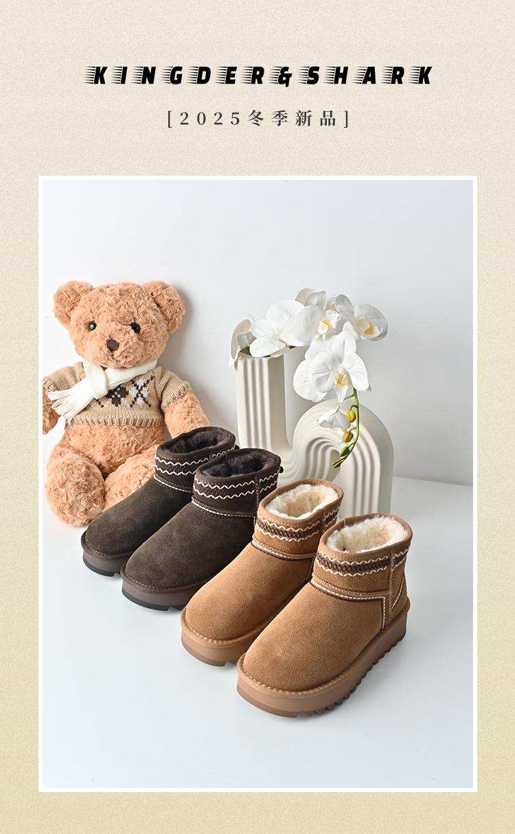 经典鲨2025年冬季专柜新品牛皮革复古加绒加厚御寒雪地靴女KW133-558011