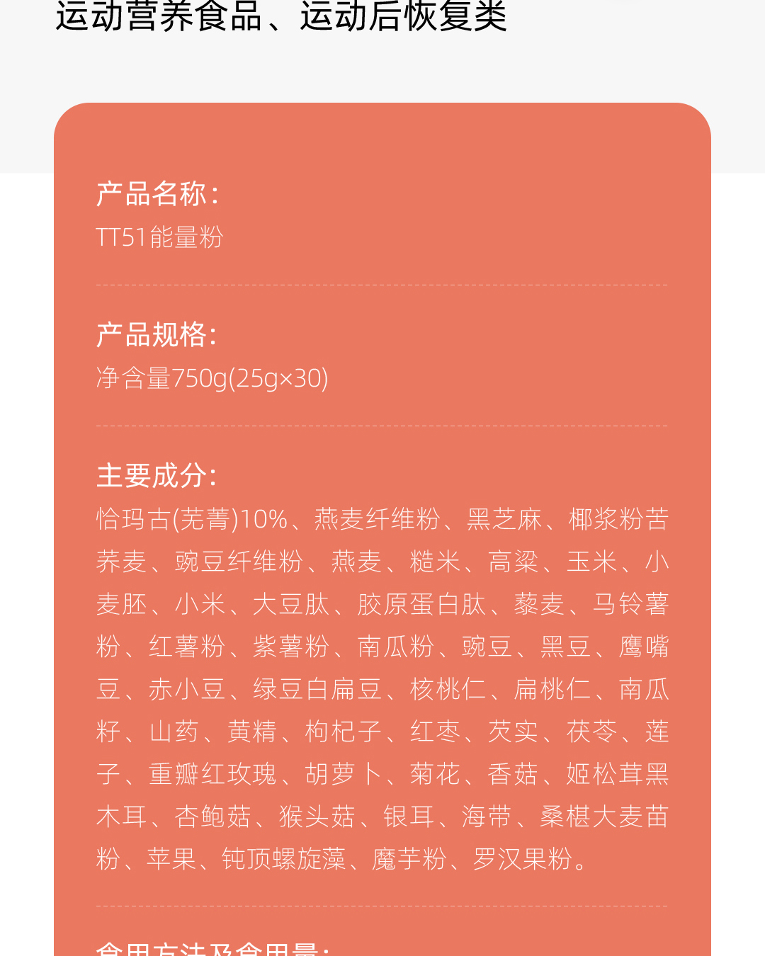 TT51能量粉-药食同源、51种食材、瑜伽普拉提运动好帮手、特殊膳食用食品