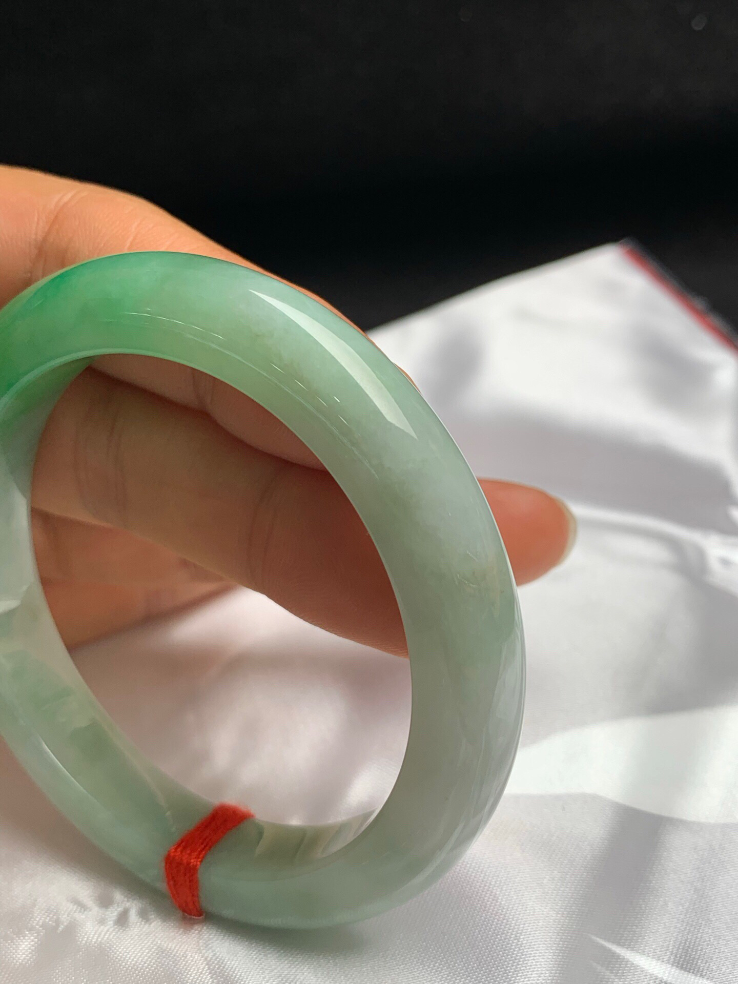 612784,53圈口,细糯飘绿正圈平安镯,细糯有水,淡底色飘阳绿,窄条小圈口,无裂,尺寸:53-10.3-8.3,超值价💰29400 #优石客珠宝#香玉荟萃
