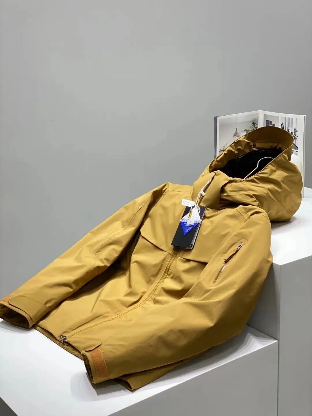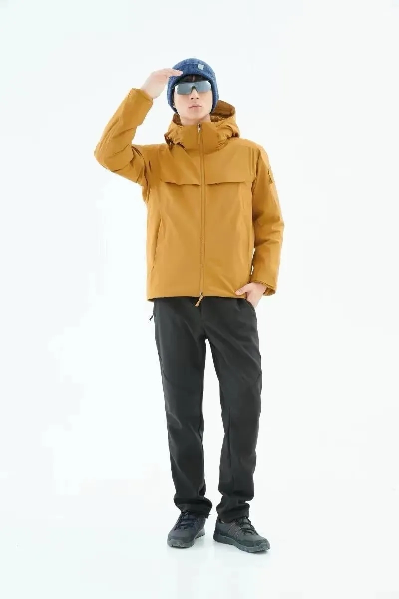 颜色:黑色 姜黄 蓝色 尺码:M ---3XL 【机能王者】可脱卸帽冲锋衣羽绒服,滑雪通勤双场景的硬核保暖担当 当专业滑雪级防护遇上都市通勤的简约质感,这款羽绒服重新定义“全天候保暖战袍”! • 硬核防护力:采用高端防水防风面料,狂风骤雨、冰雪侵袭都能轻松阻隔,像给身体裹上“隐形防护盾”,滑雪时应对湿冷环境游刃有余,日常通勤遇上雨雪天也能从容自在。 • 灵活造型感:可脱卸连帽设计,想走简约干练风就卸下帽子,秒变都市型男;要奔赴雪场或应对极端天气,戴上帽子即刻拉满防护力,一衣多搭,风格切换自如。 • 专业机能细节:从YKK拉链的顺滑耐用,到袖口魔术贴的贴心锁温,再到立体口袋的实用性设计,每一处细节都彰显专业户外基因,既是冲锋衣的硬核,又是羽绒服的暖芯,滑雪、登山、日常出行,全场景hold住! 不管是驰骋雪场的热血时刻,还是穿梭都市的日常通勤,它都能以“防水防风+可脱卸帽+羽绒保暖”的全能表现,成为你秋冬衣橱里的“实力王牌”!
