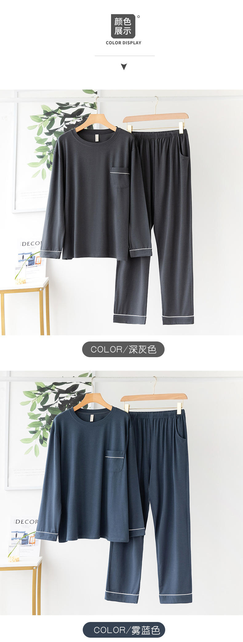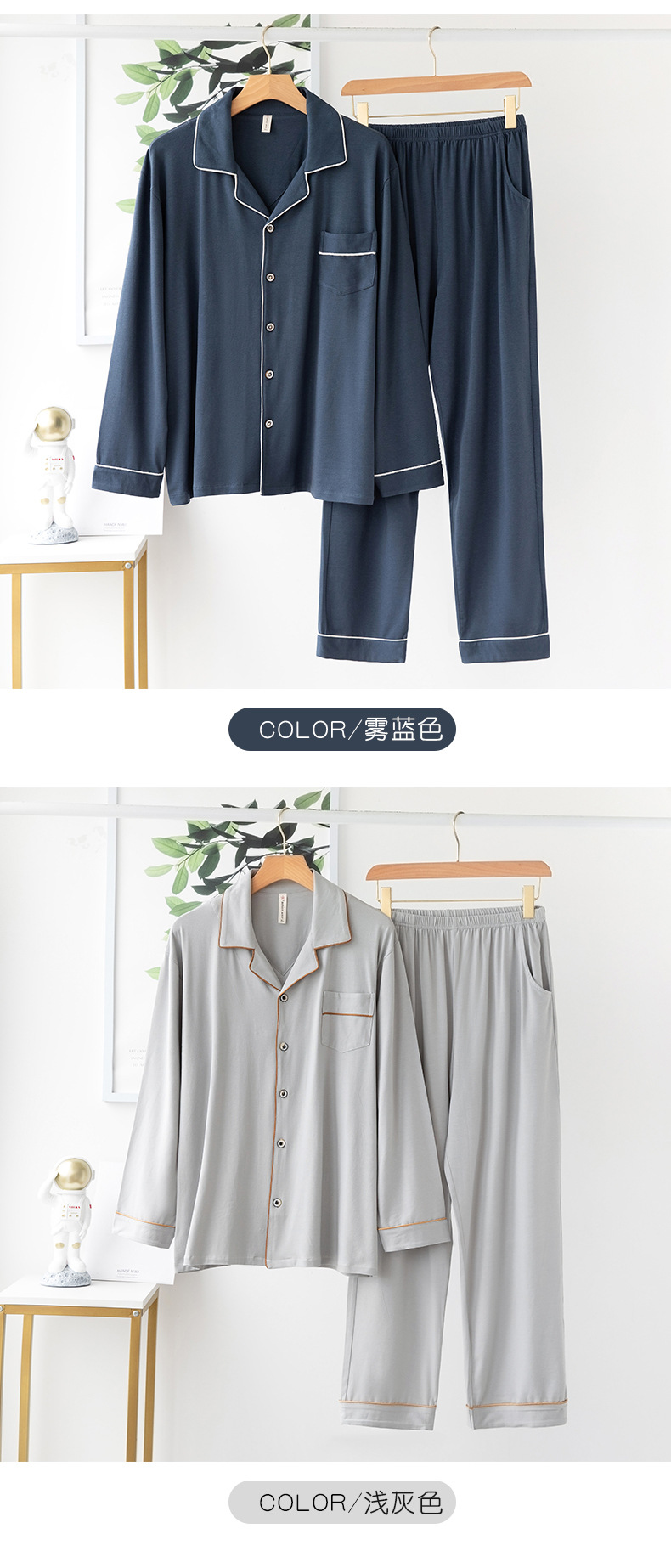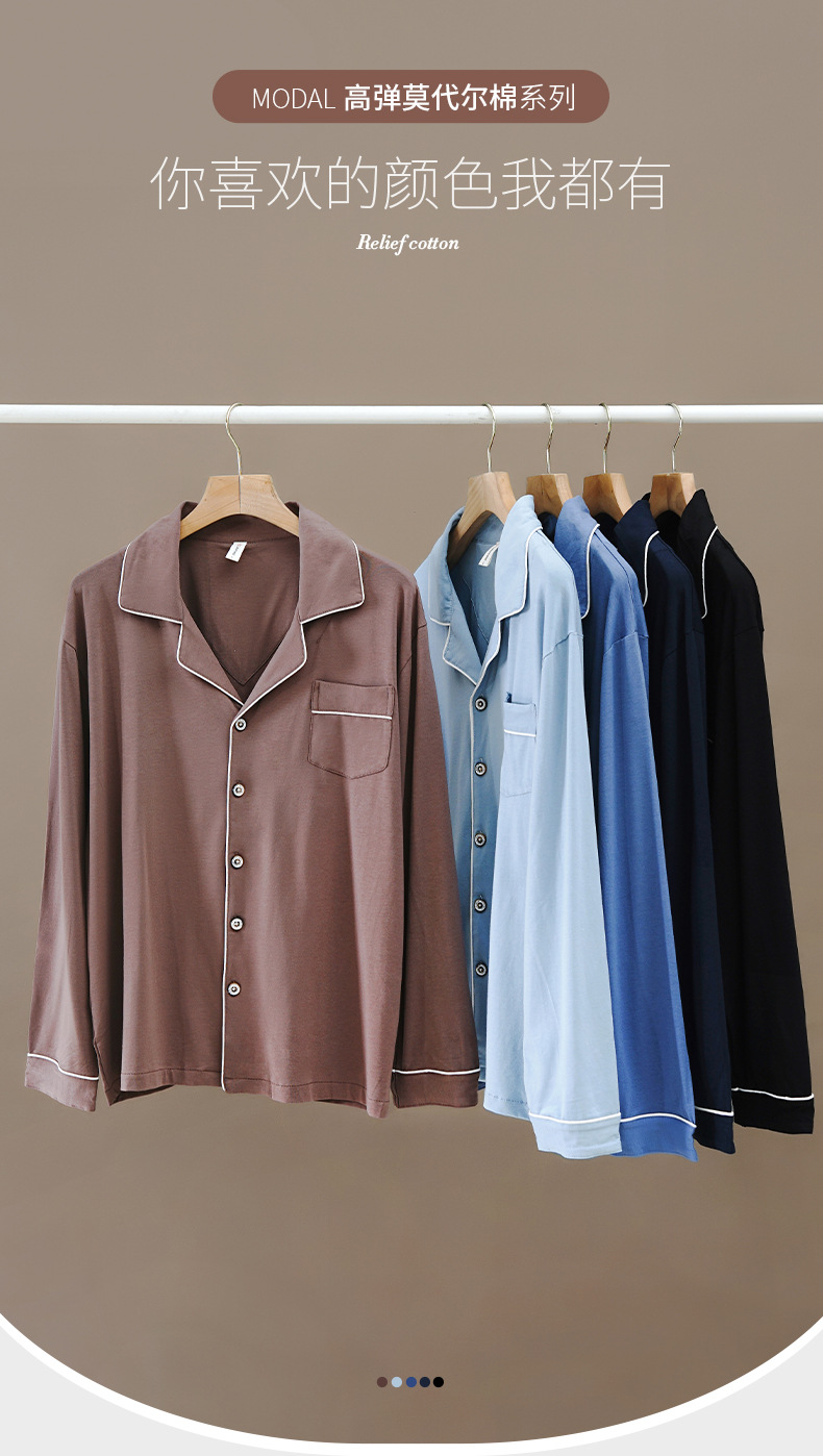 【服饰鞋包】亦绚睡衣男夏季长袖长裤莫代尔家居服薄款夏天休闲大码男士套装