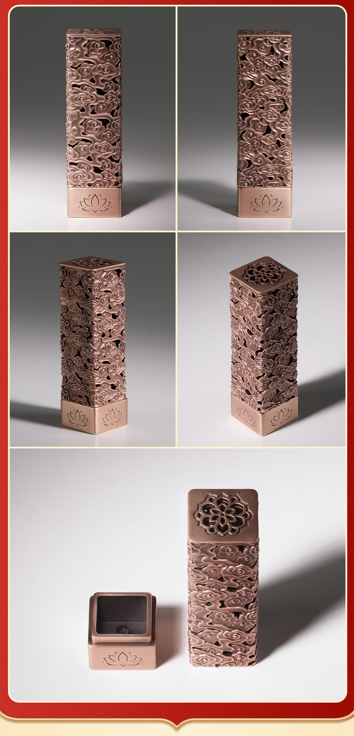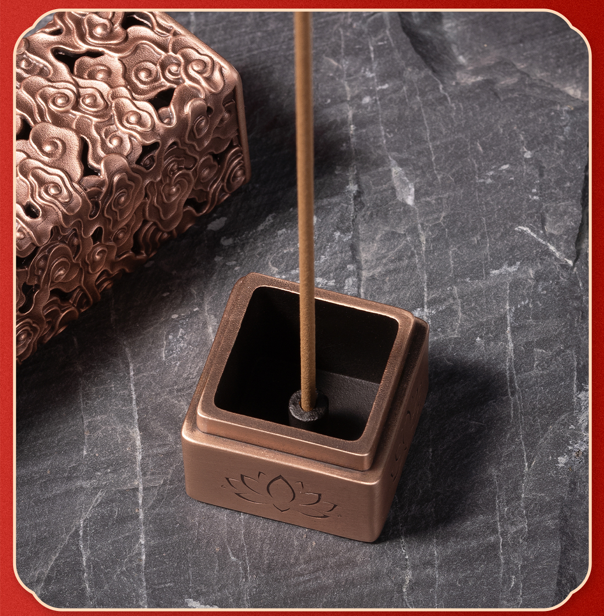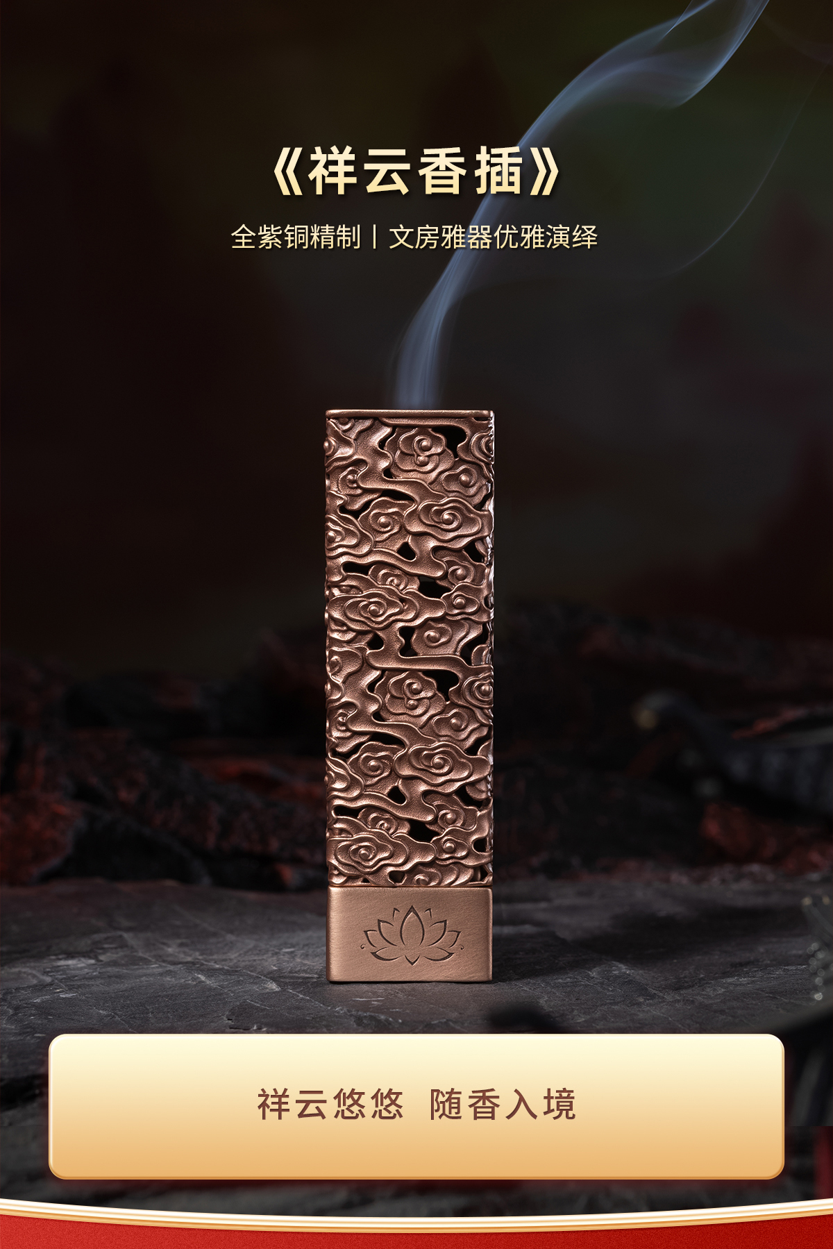 铜师傅《祥云香插》客厅桌面紫铜香插摆件 家居装饰工艺品
