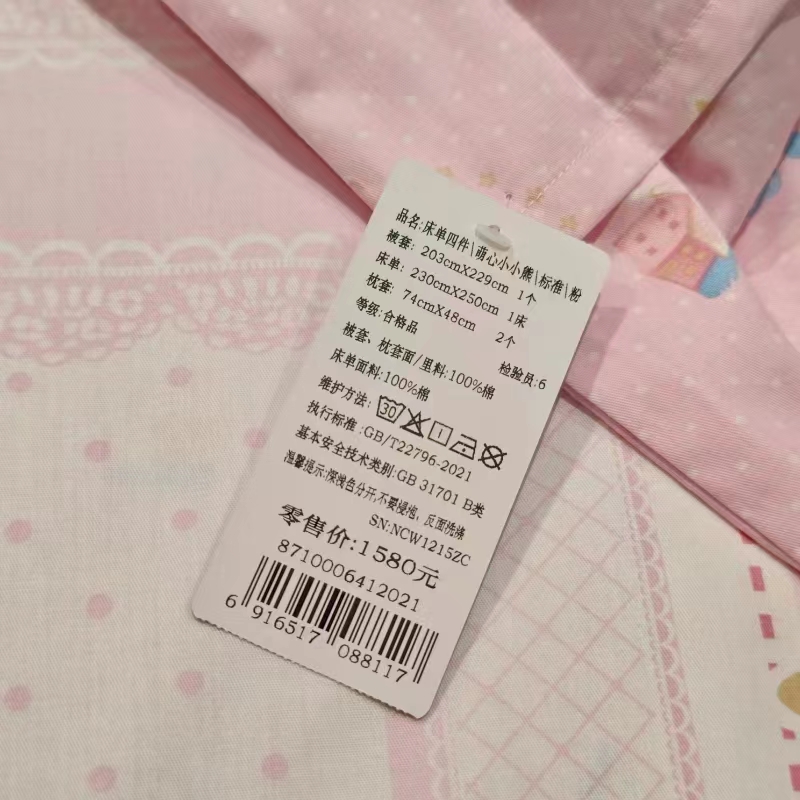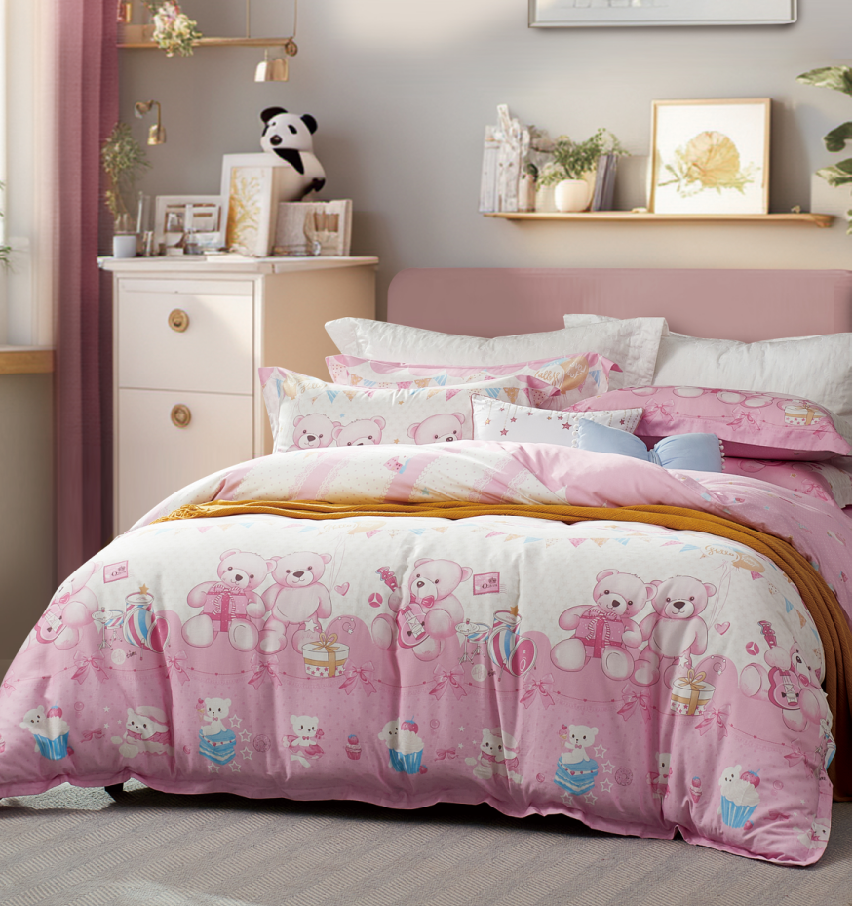 【6F】富安娜 床单四件\萌心小小熊,标准,粉