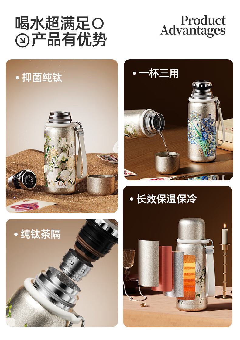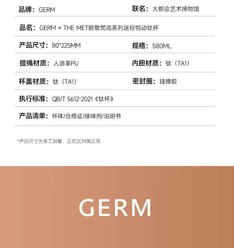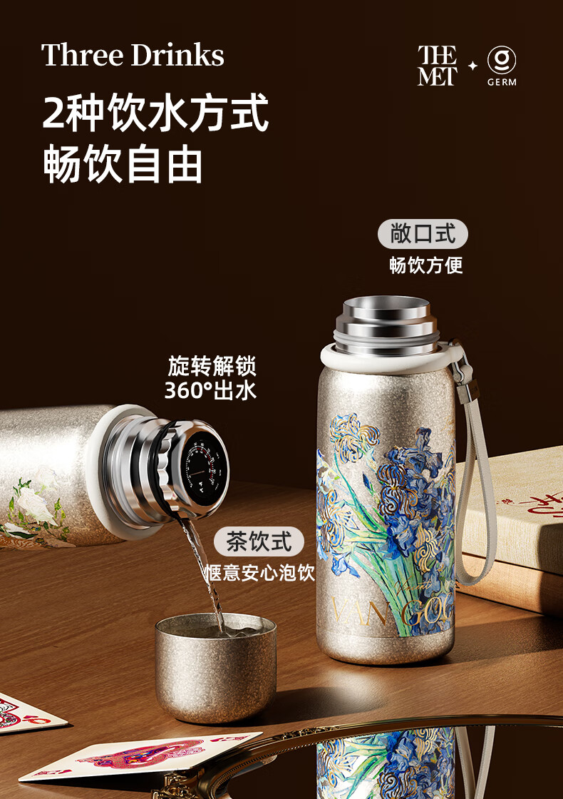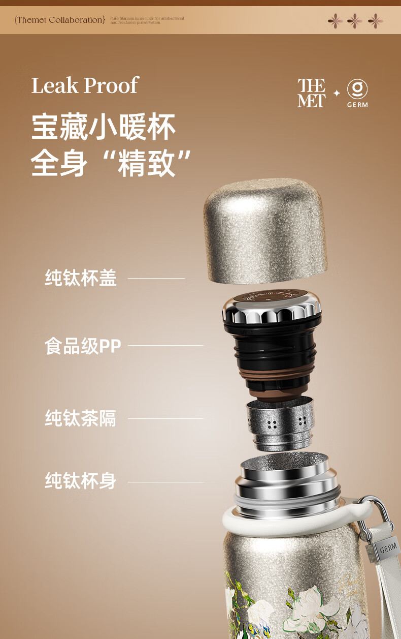 【6F】多样屋格沵(germ)纯钛超轻保温杯大都会梵高联名水杯高颜值女礼物咖啡杯大容量杯子 迷你悦动钛杯【轻奢礼盒】580ml