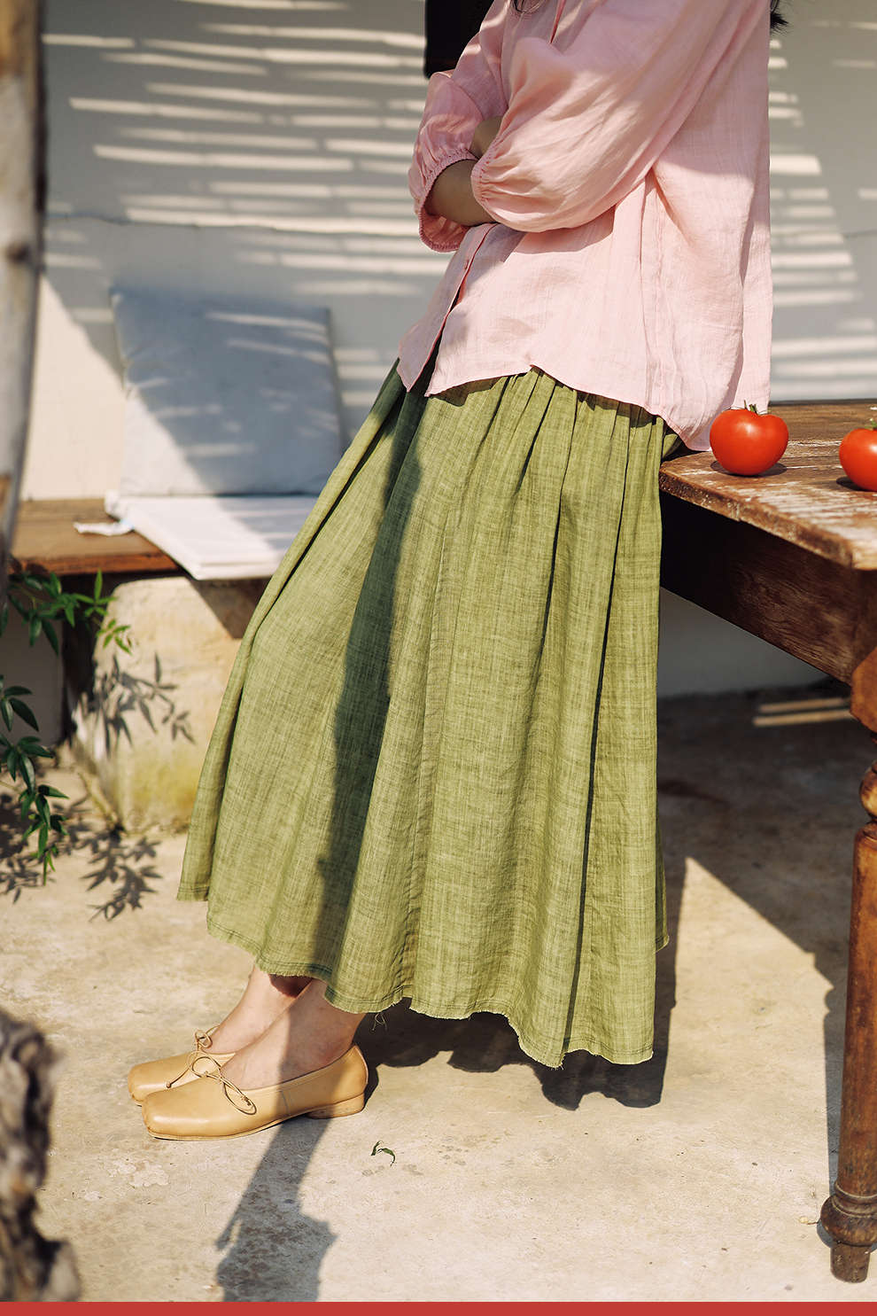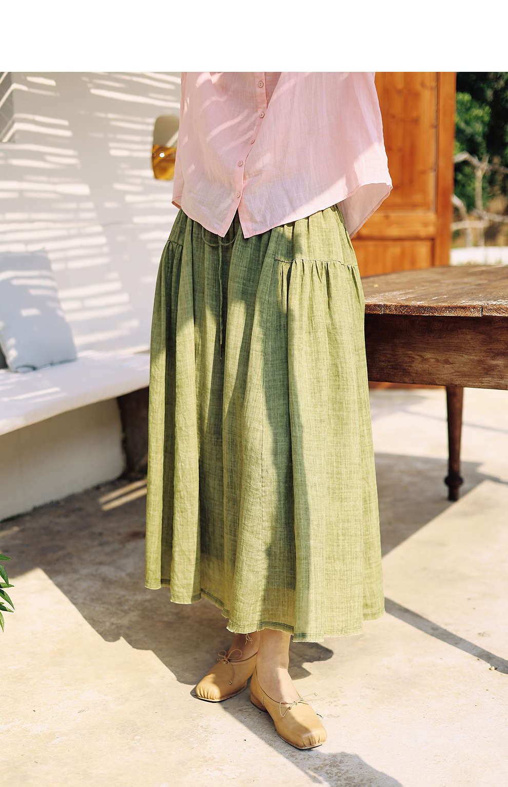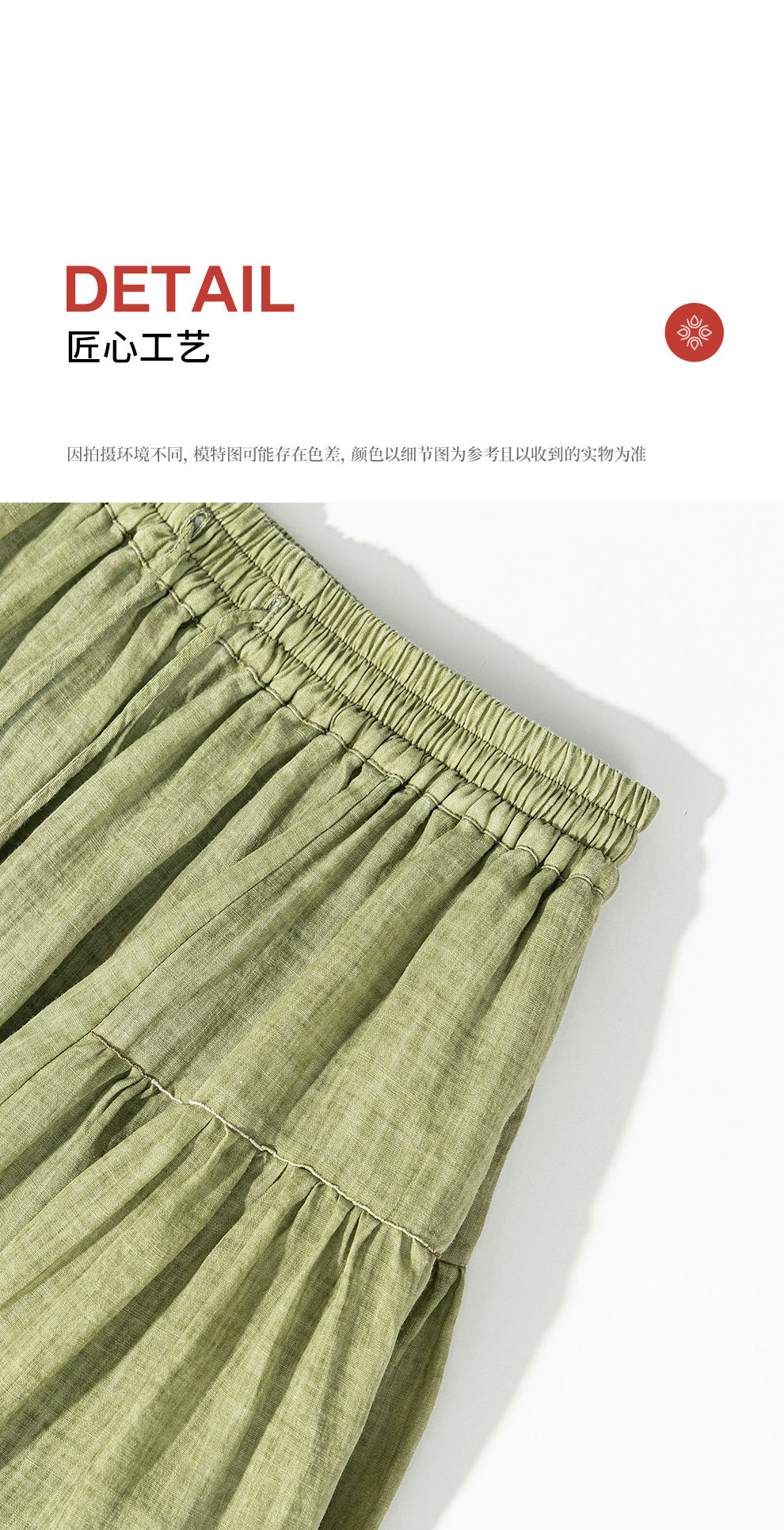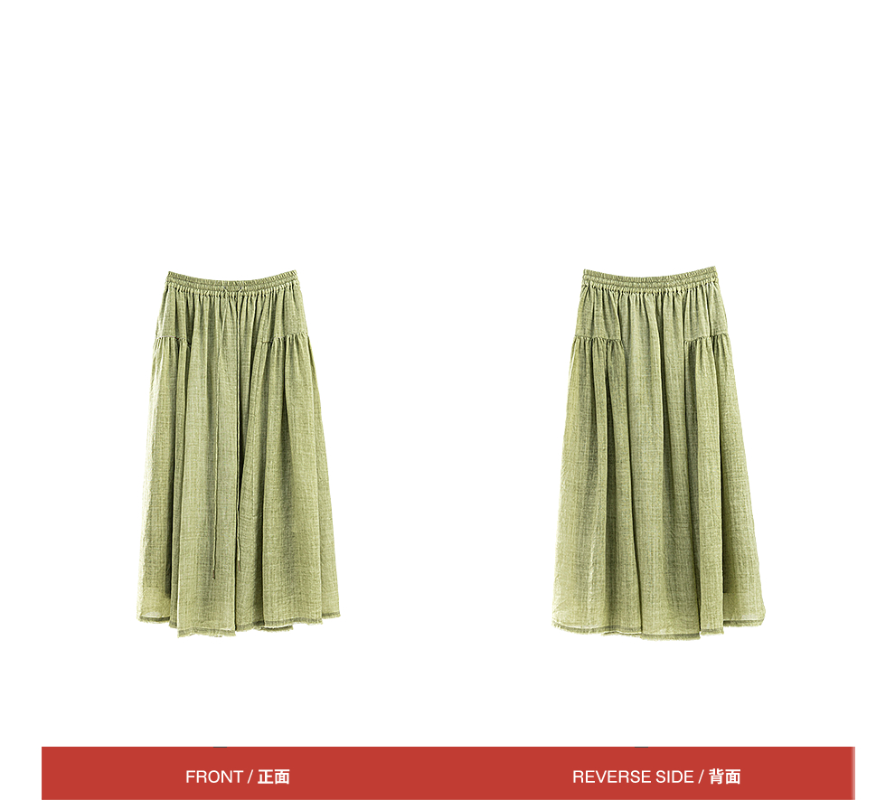 绽放女装376朵/【多巴胺系列】苎麻炒色局部抽褶松紧腰半身中长裙