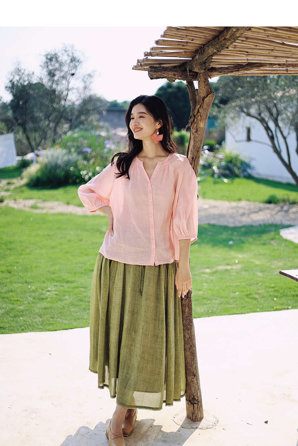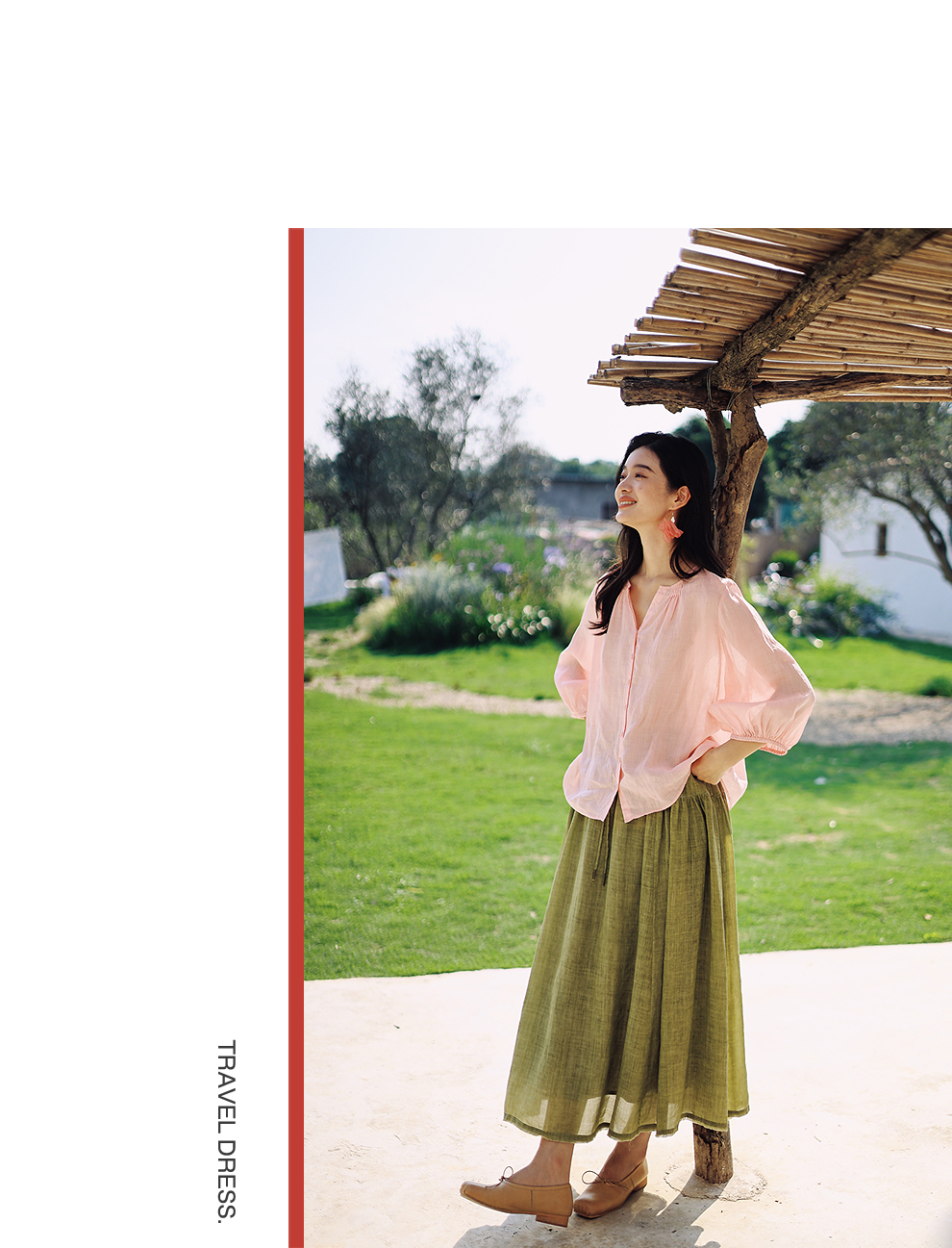 以天然亚麻为载体,融合热烈色彩与自在剪裁为身在城市、心怀远方的女性提供兼具美学与舒适的旅行着装