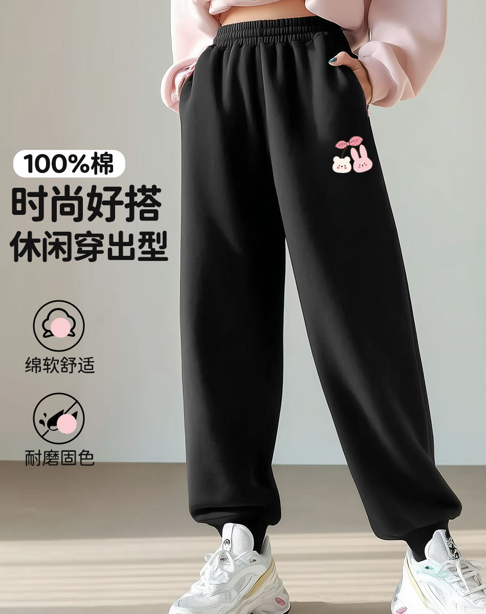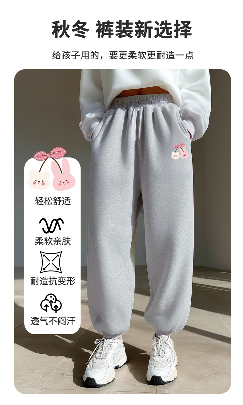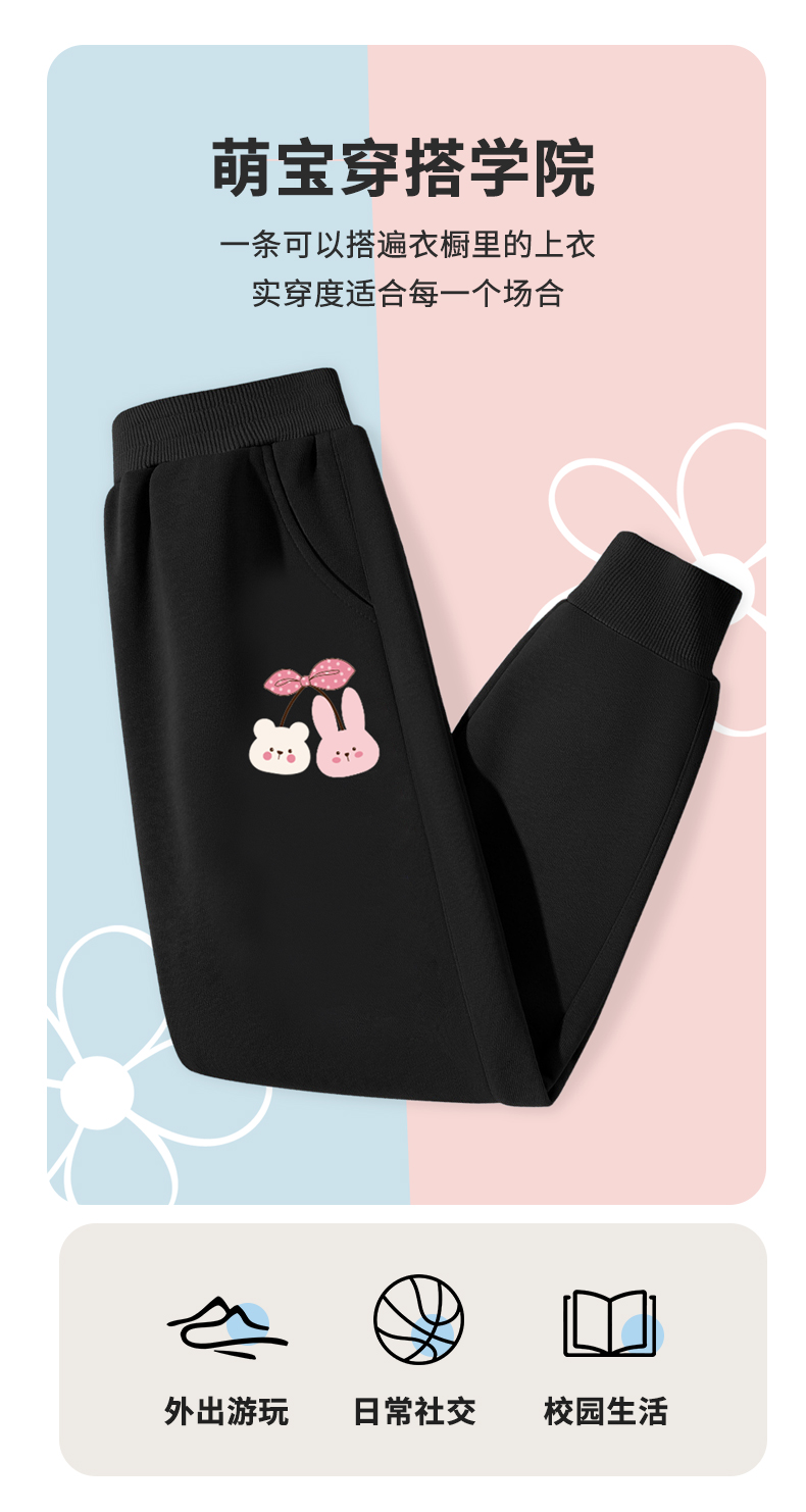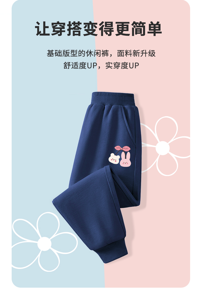 贝贝怡童装儿童长裤2025春新款中大童束脚裤休闲女宝宝洋气运动裤ZB3EK004