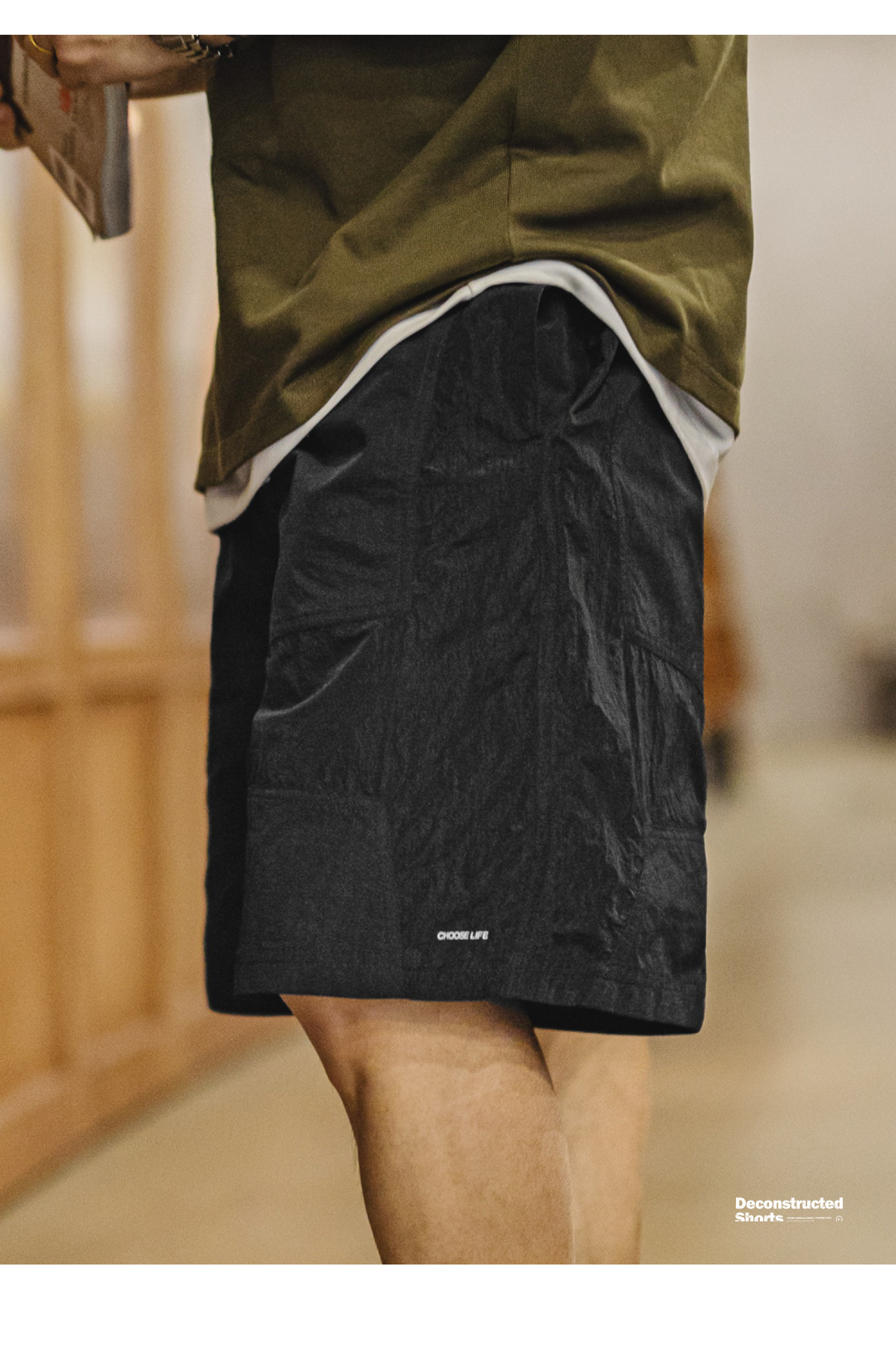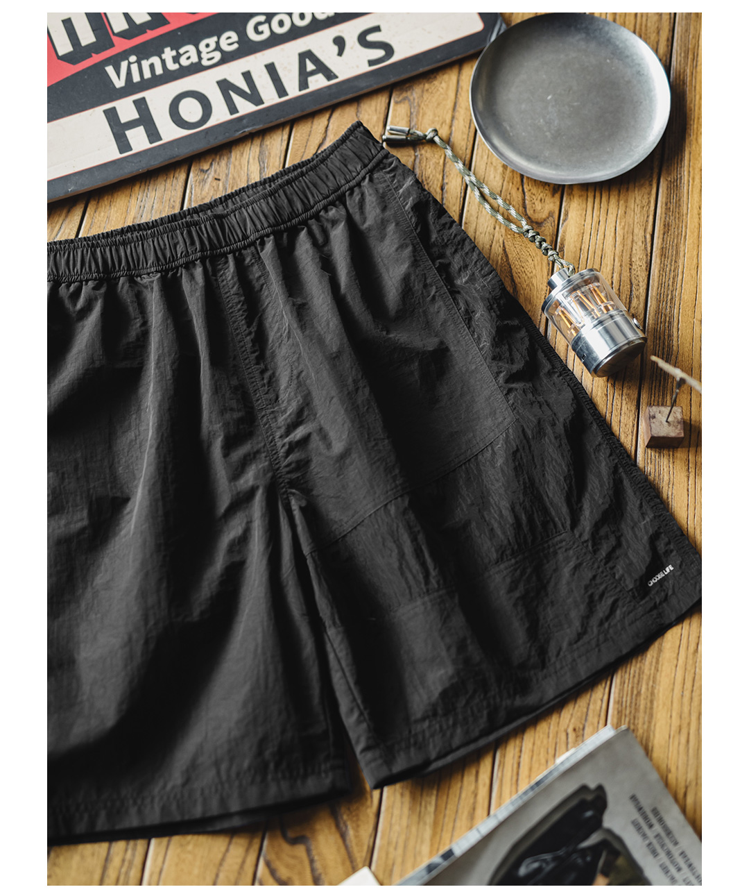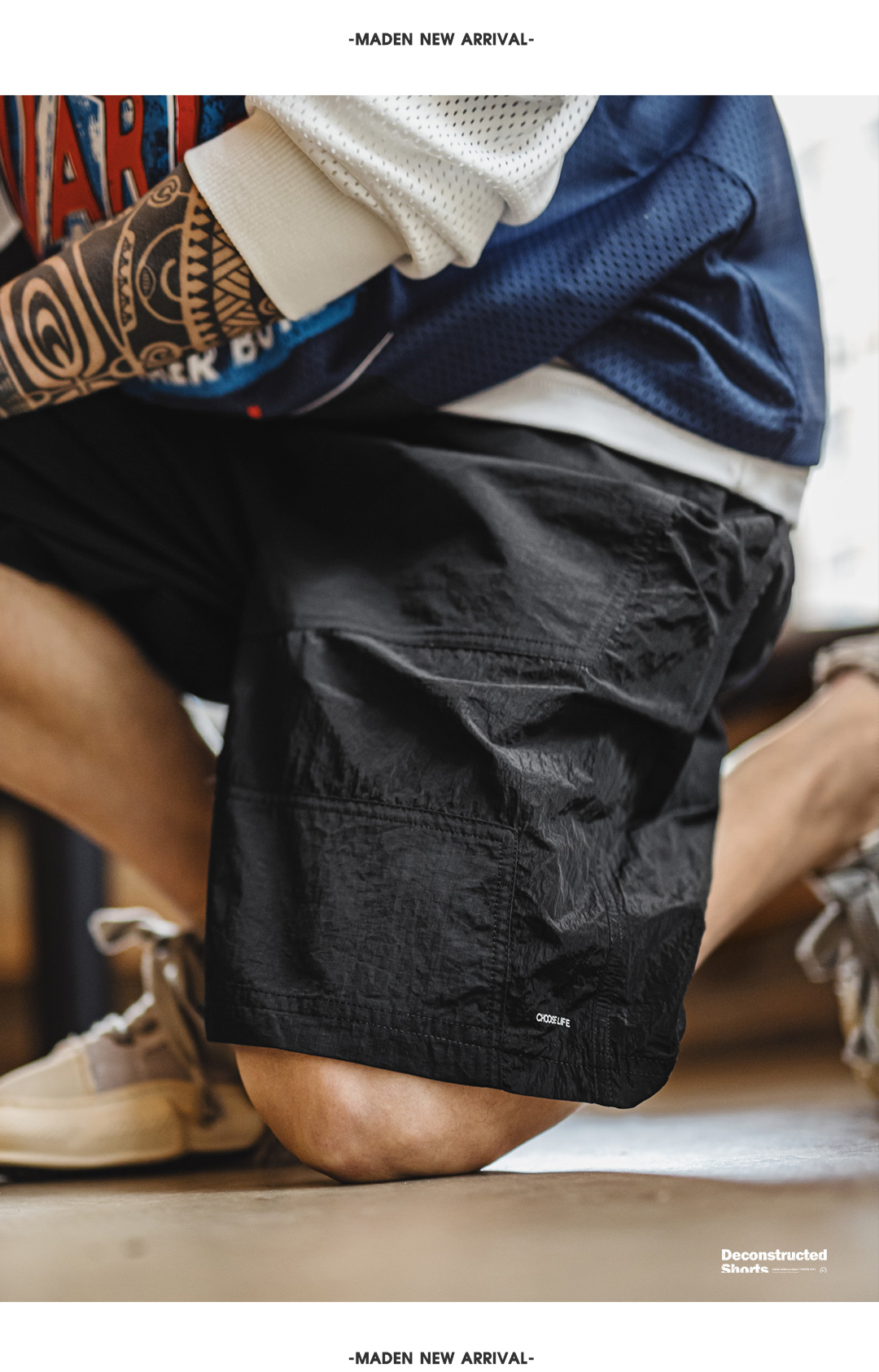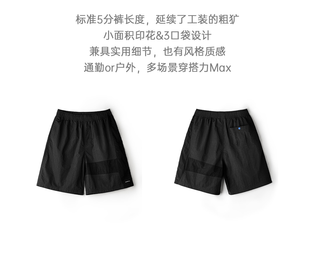 马登工装美式山系机能短裤黑色直筒尼龙薄款速干沙滩五分裤男夏季