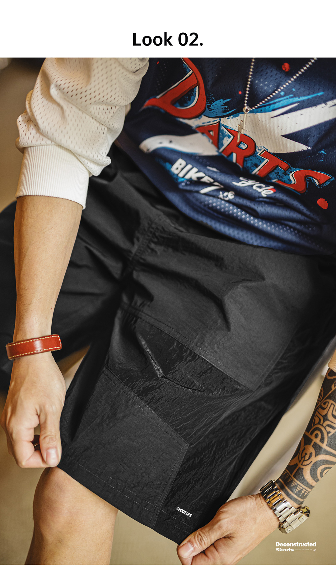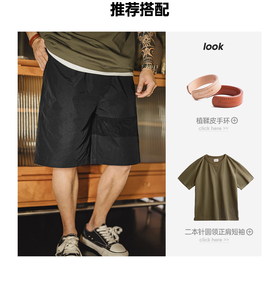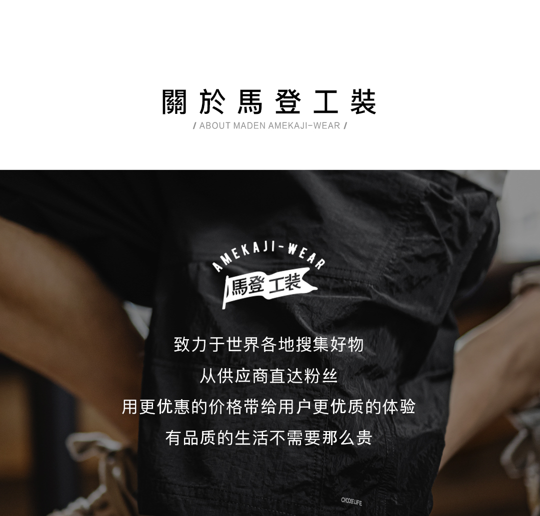 马登工装美式山系机能短裤黑色直筒尼龙薄款速干沙滩五分裤男夏季