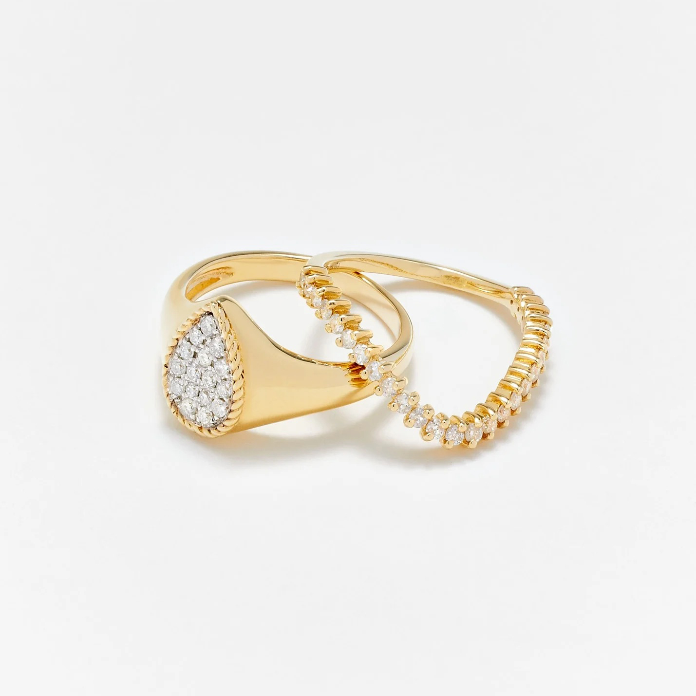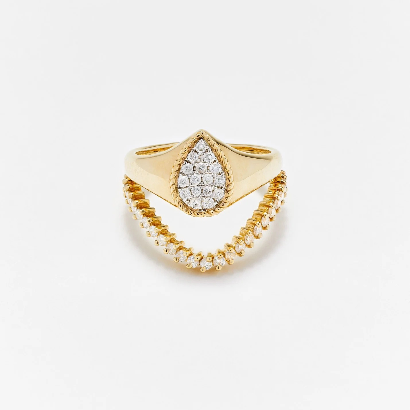 订购10周到|Yvonne Leon-POIRE VAGUE-9K黄金 梨形钻石 女士 组合 戒指[法国设计师]