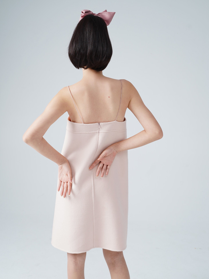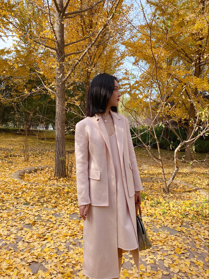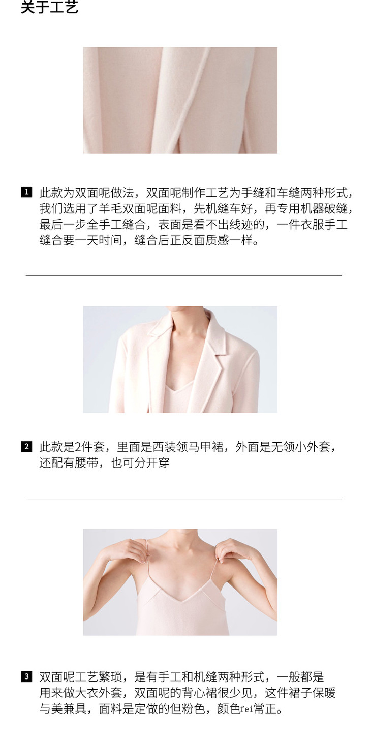 黑标系列淡粉粉双面羊毛定制优雅外套组合吊带连衣裙