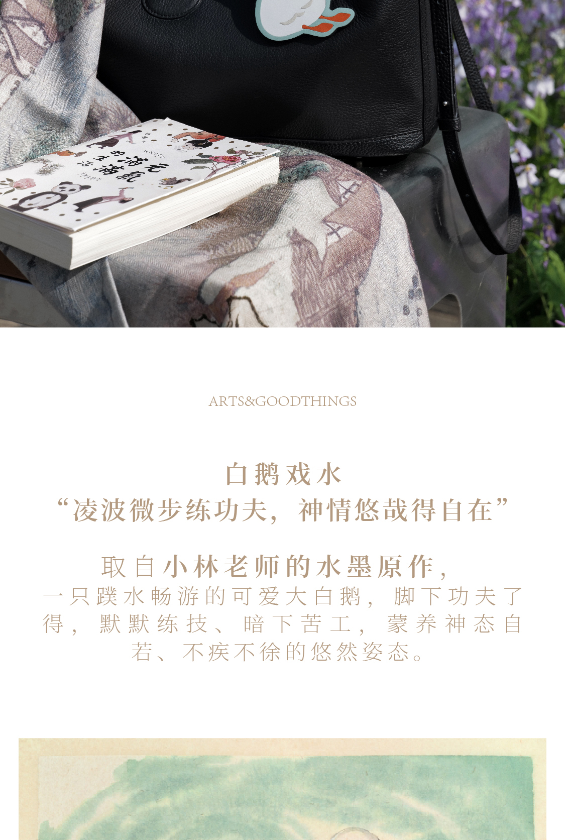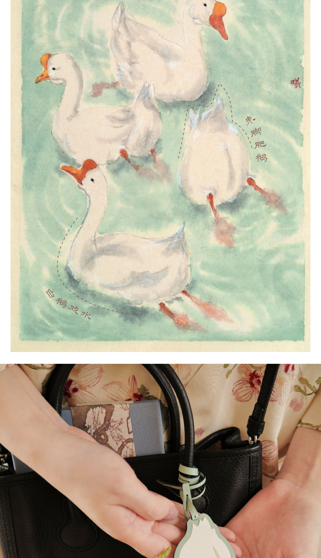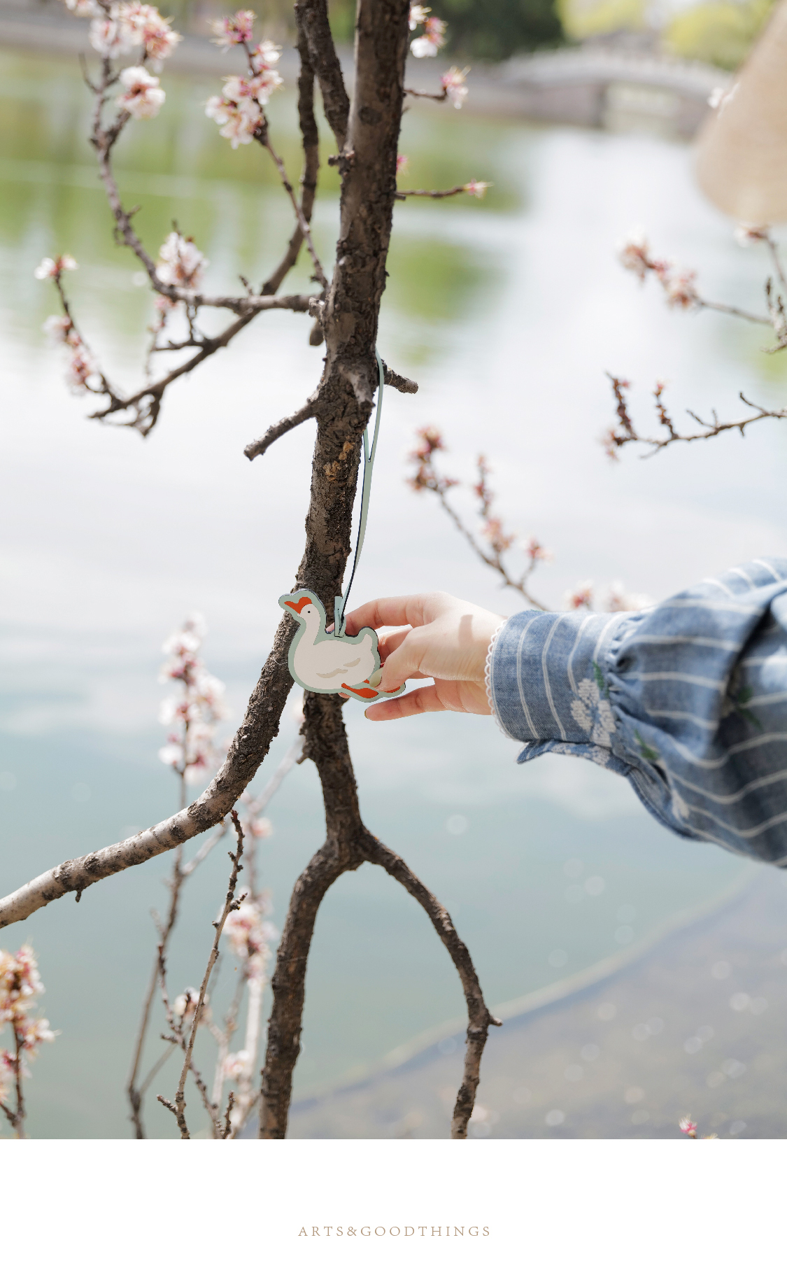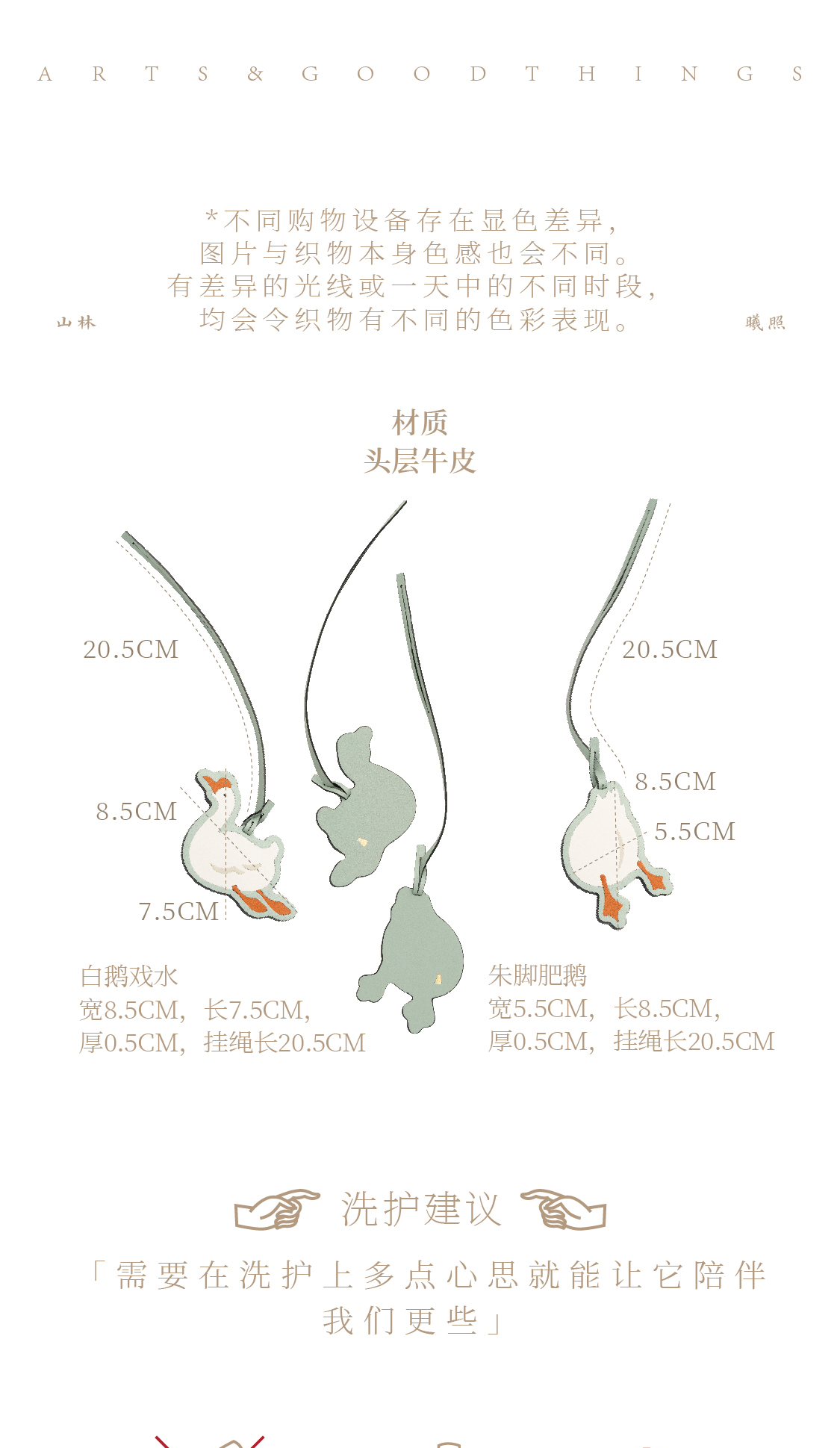 白鹅碧水 水墨原作 柔软皮质挂件 山林曦照