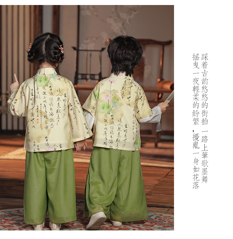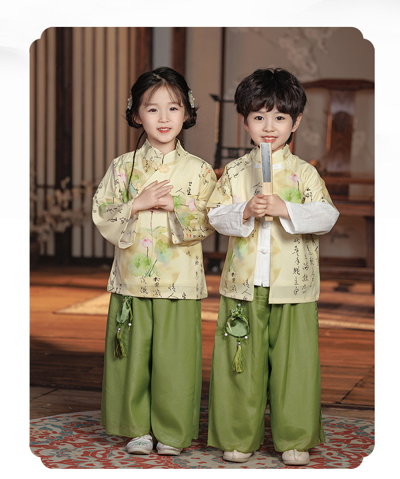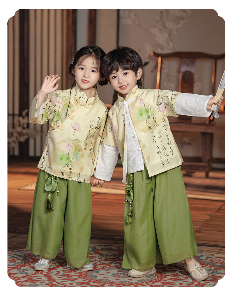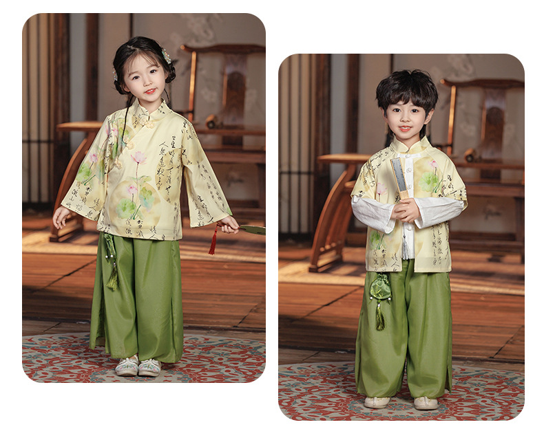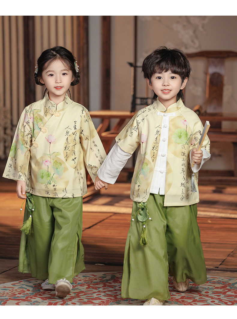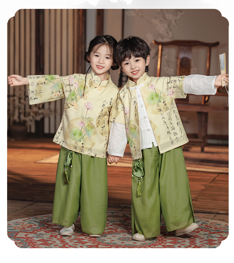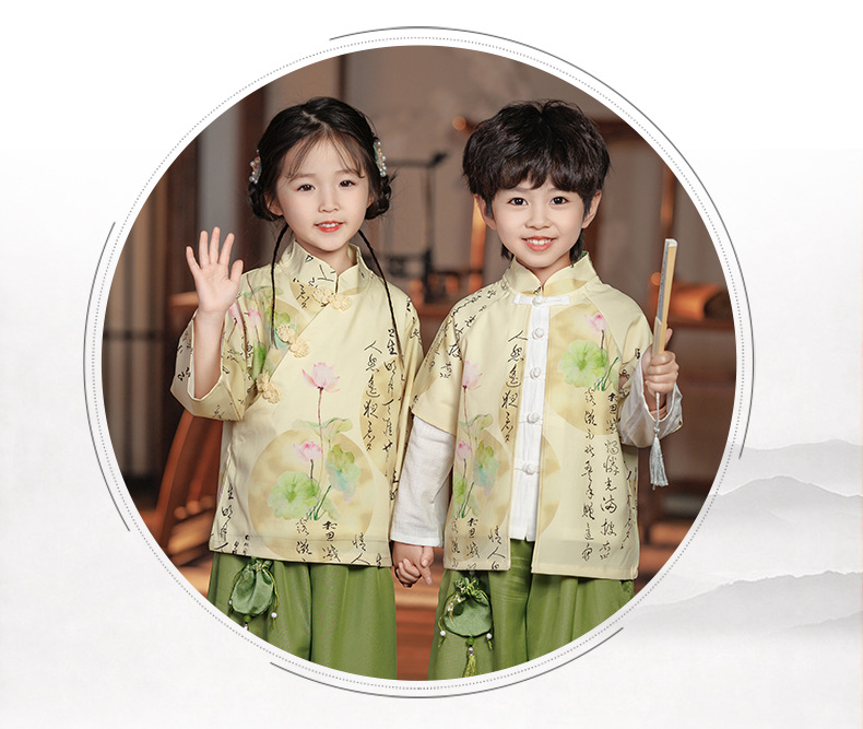 【千字荷花兄妹套装 】男童汉服春秋2024新款儿童国风唐装女童古风套装宝宝薄款中式服装