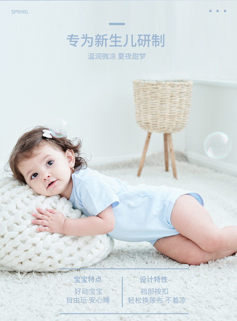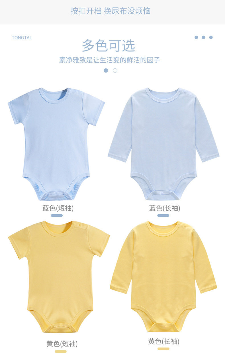 婴儿肩扣短袖三角哈衣全棉长袖宝宝包屁衣长袖连身衣爬服空调服