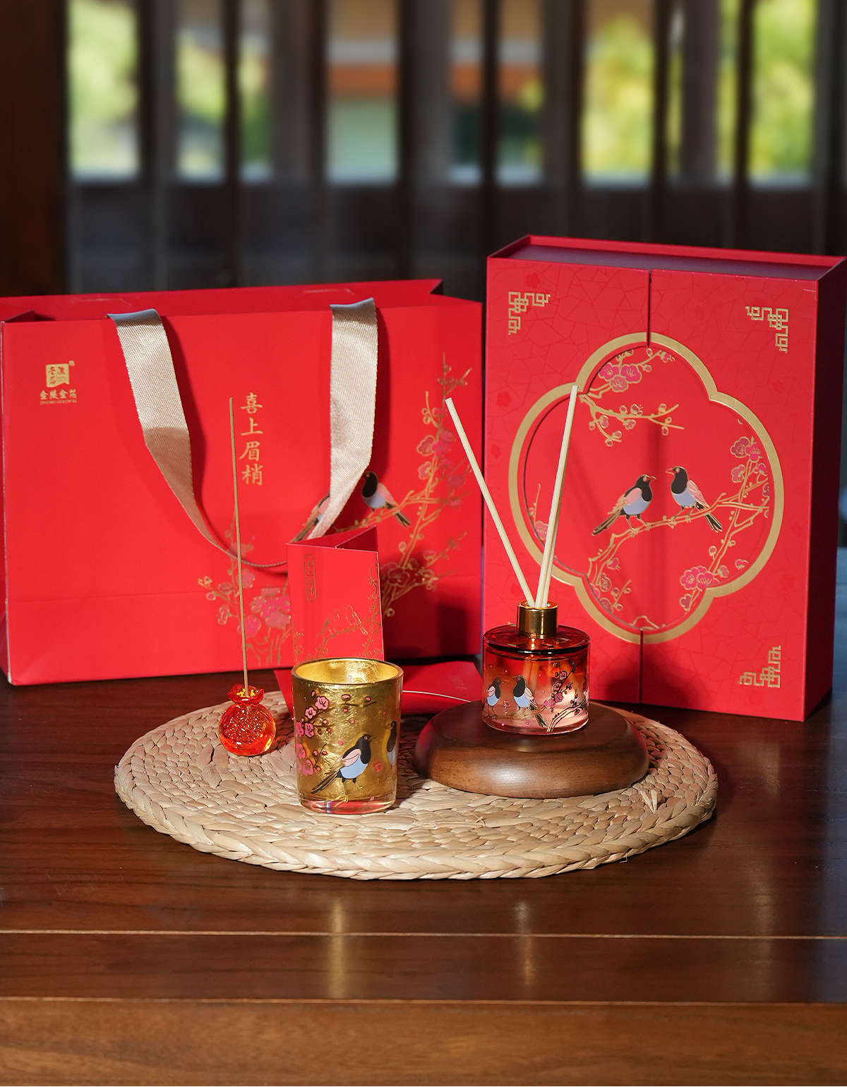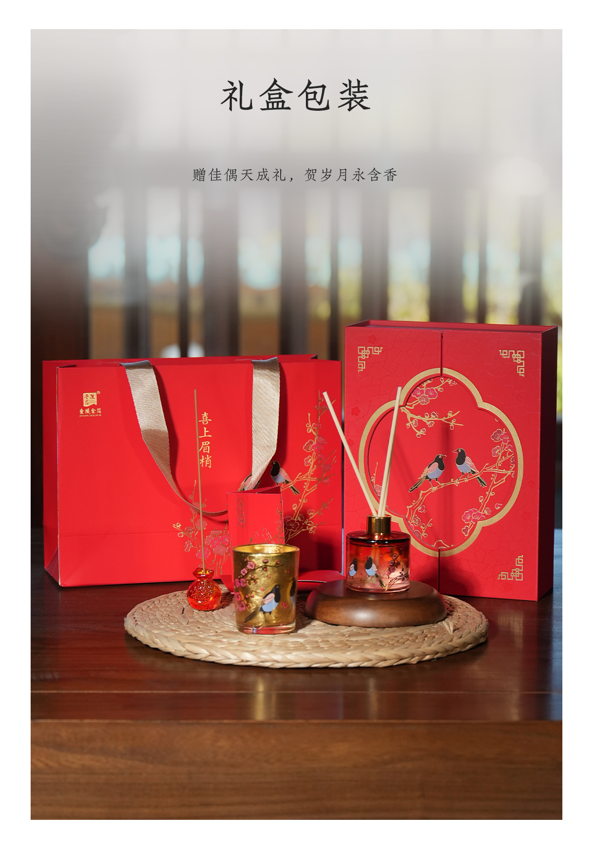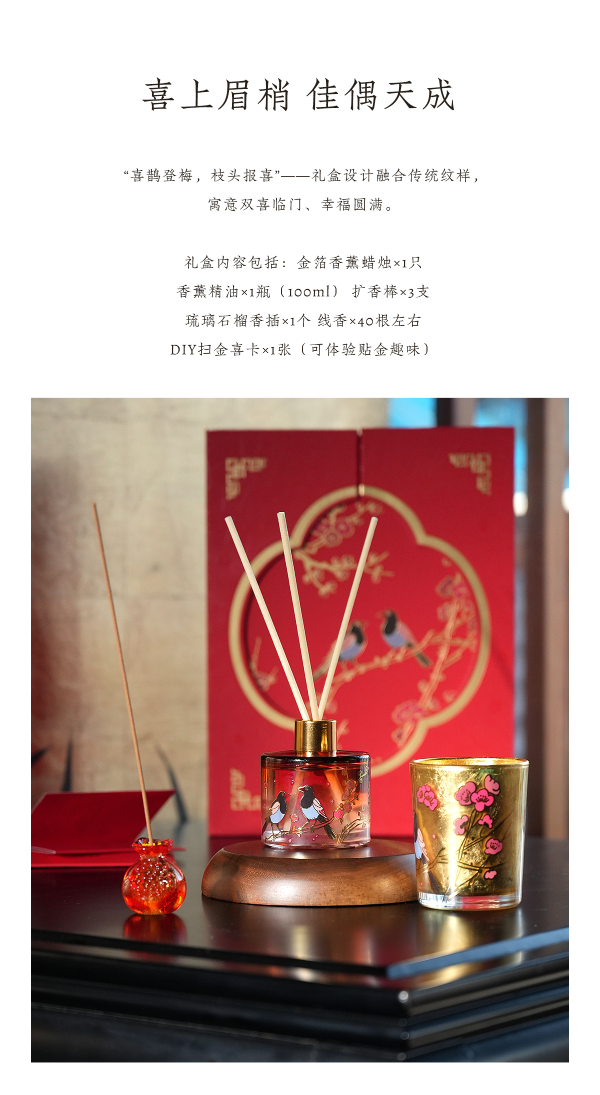 金陵金箔梅鹊浮香香薰礼盒套装新婚贺礼送女友闺蜜生日结婚送礼物