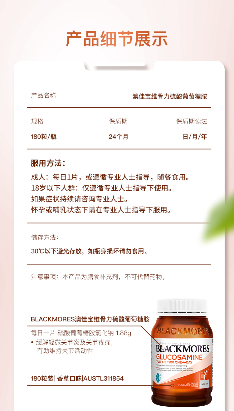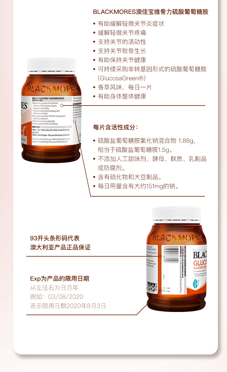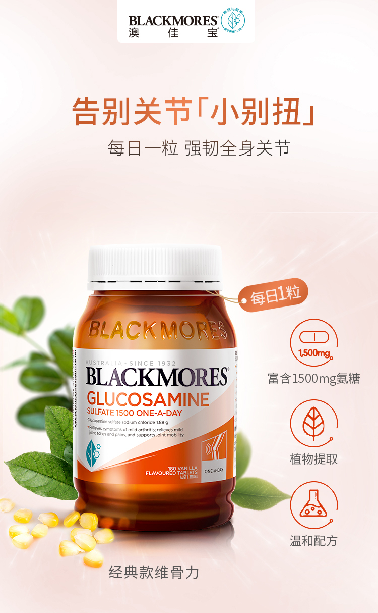 BLACKMORES澳佳宝维骨力180粒 氨基硫酸葡萄糖关节灵