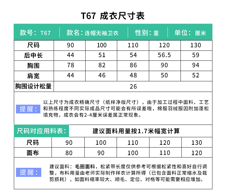 裁缝学苑 T67春夏带帽无袖卫衣1:1实物服装纸样剪裁图纸牛皮纸样