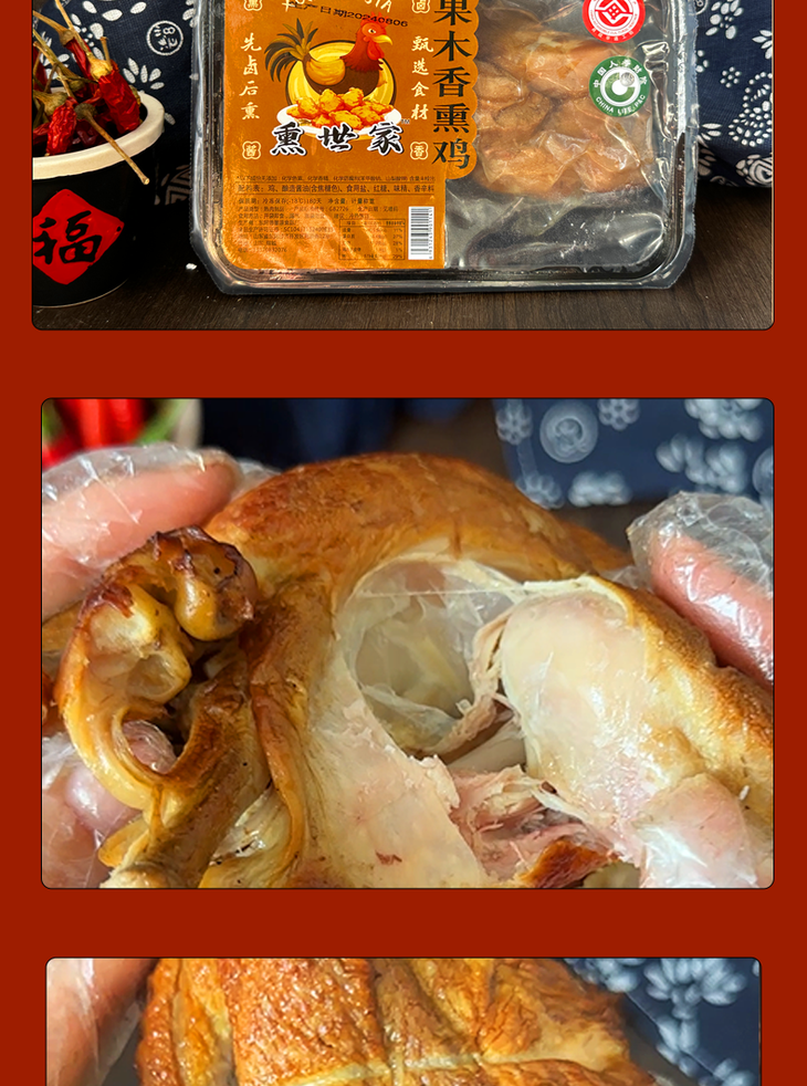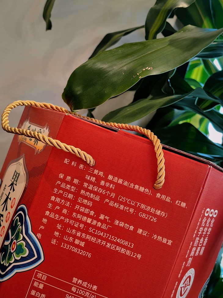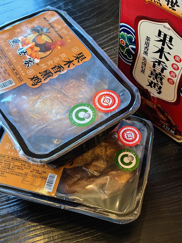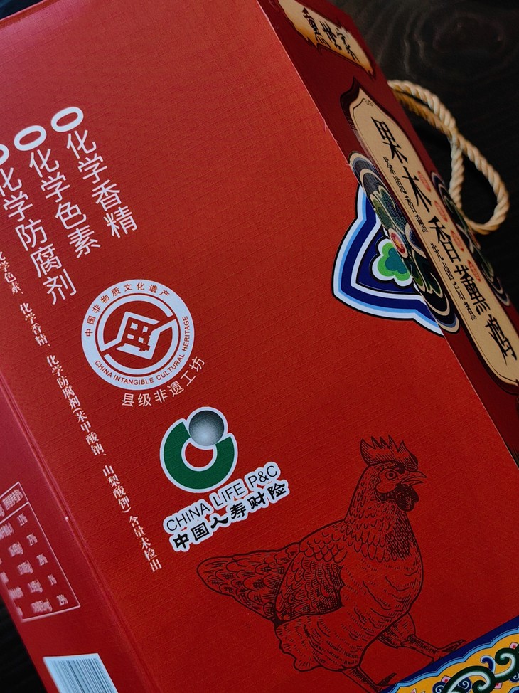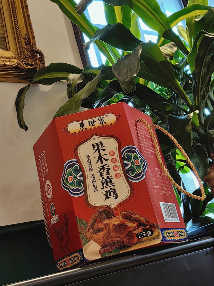 熏鸡有普通装和礼盒装,大家可以根据需要选。我留的是礼盒装,红红火火,里面是2只熏鸡,送亲戚朋友也很合适,鸡”与“吉”同音,寓意着吉祥与好运,过年作为年货真的超赞!