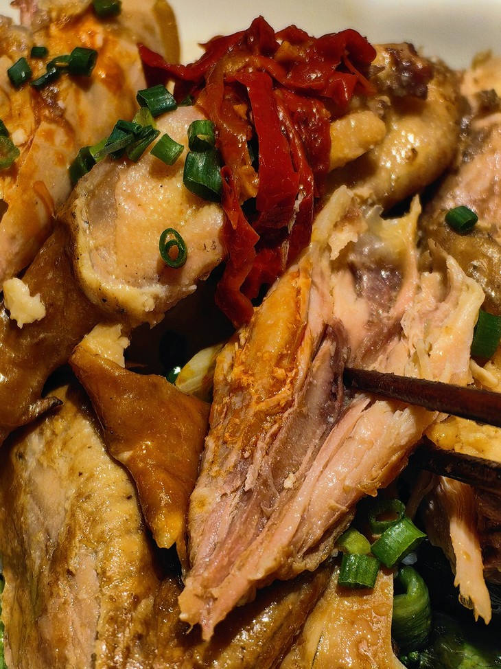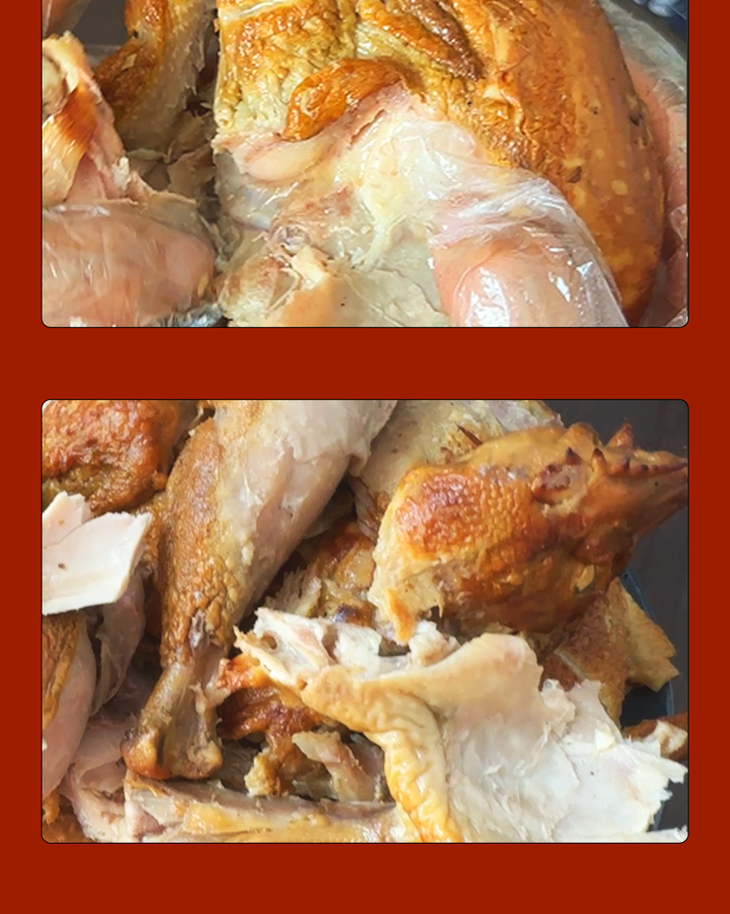 一只熏鸡就有大概520g,足够全家人围炉分享了,金黄油亮,香气扑鼻!薄薄的鸡皮包裹着紧实的肉肉,经过果木熏烤的果木香,非常独特!只要轻轻一扯,鸡腿便应声而落,骨头都已经酥软,但肉质却紧致而不老,嫩而不柴,入口软嫩香滑,越嚼越香!鲜咸熏香的味道,凉吃还是热吃都可,放到空气炸锅烤一下,更是美味无比!