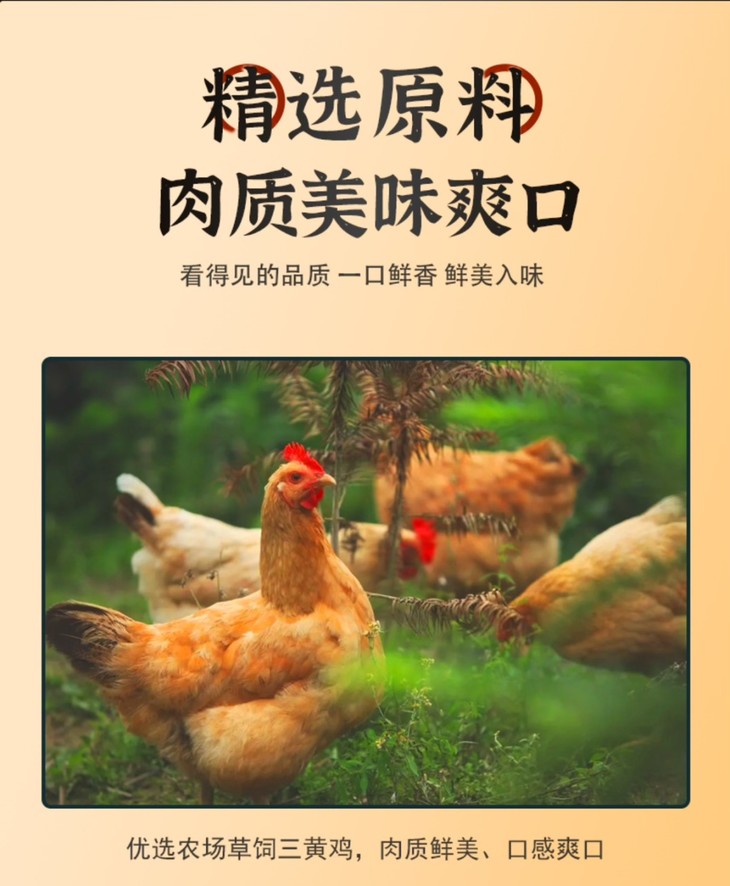 熏世家用的是农家散养三黄鸡,这些被誉为“跑步鸡”的珍禽,自幼啄食五谷杂粮,在自然中奔跑嬉戏,原生态散养长达180天之久。它们远离催化素的干扰,在纯净的生长环境中,孕育出肉质鲜嫩、口感细腻、肌肉紧实有弹性的佳肴。