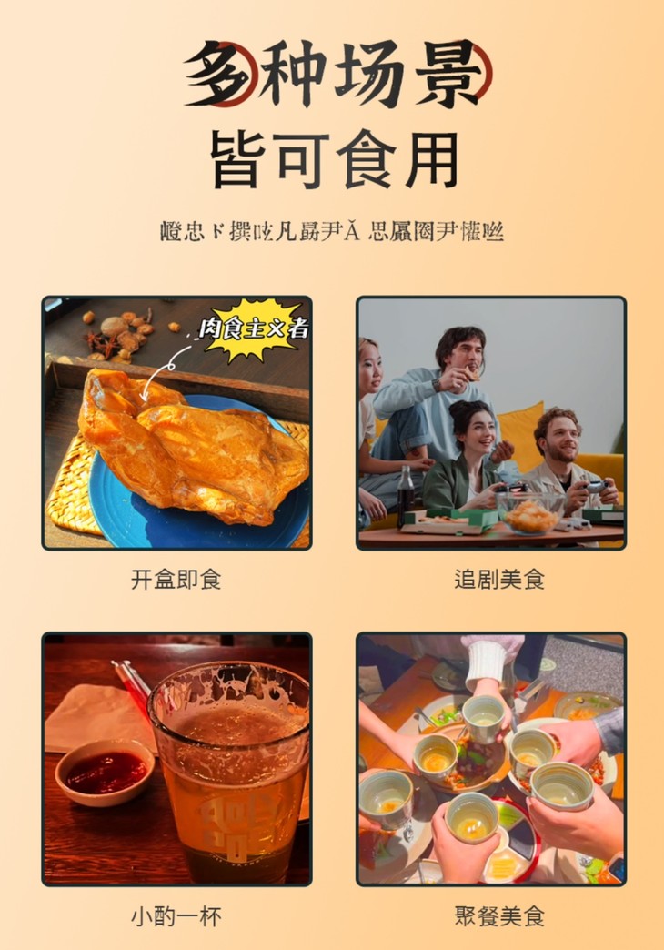 在制作工艺上,熏世家坚守百年传承的先卤后熏的非遗工艺,拒绝添加,确保每一份都是天然健康的美味。制作过程繁琐而精细,整只鸡要经过12小时的浸泡去杂与二次去毛,再用秘制配料腌制24小时,让卤香味深深沁入每一寸肌理。随后用传统马莲草捆扎,入锅慢火煮2小时,期间加入各种秘制配料,煮至鸡肉烂而连丝,最后趁热进行熏烤。火候的掌握与果木的选择,则是薰鸡味道好坏的关键所在。熏世家挑选三种果木混合熏制,先经过蒸汽的洗礼去除杂质,再与鸡肉相遇,呈现出金黄悦目的色泽,细嫩芳香,肉肉中的烟熏味与果木清香交织,好吃!更为值得一提的是,所有熏鸡都由中国人寿承保,为这份美味加上了安全的保障,吃得尽兴!