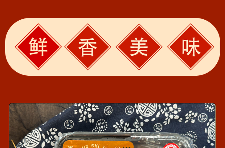 温馨小提示:食品类商品,下单后不支持修改地址、拒收或退改,不支持7天无理由退换货,介意慎拍。若收到货品后有损坏请请产品放于面单上一同拍照,能清晰看到需售后产品和面单号,且于签收后12小时内发送照片给客服售后,未提供凭证或超过售后时效,无法处理,介意慎拍。