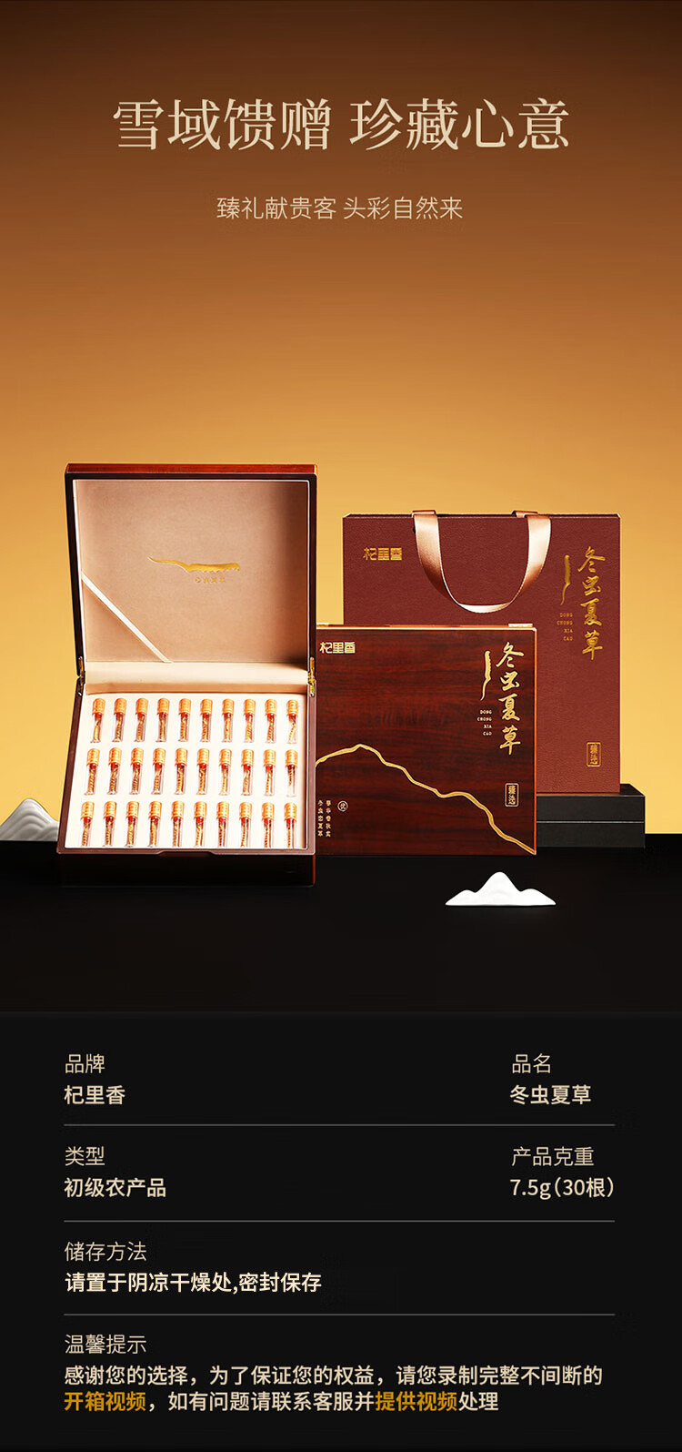 杞里香 冬虫夏草7.5克(30根)青海玉树新干虫草礼盒