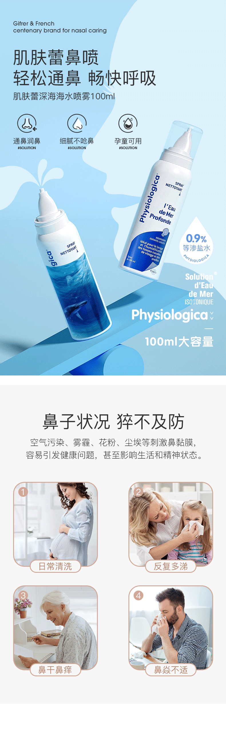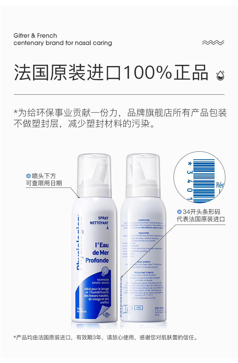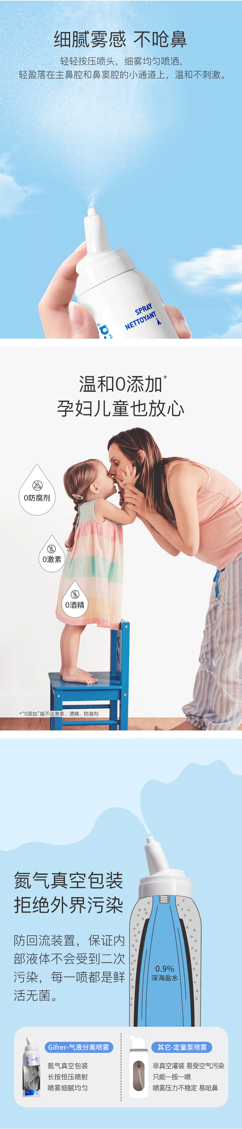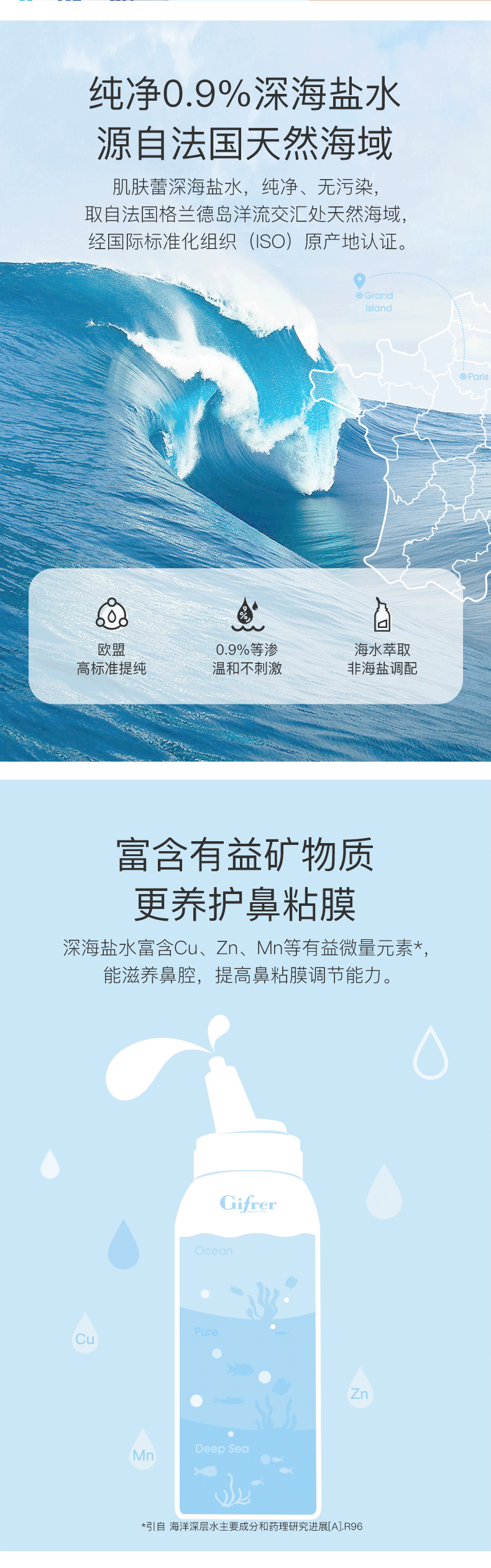 法国Gifrer肌肤蕾深海盐水鼻腔清洁喷雾100ml/瓶婴儿成人