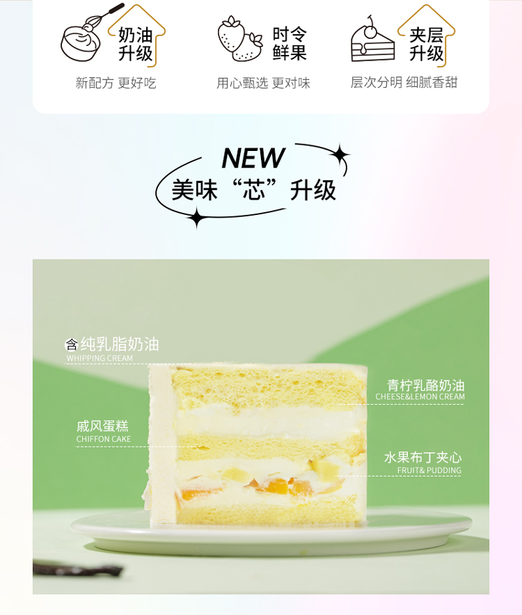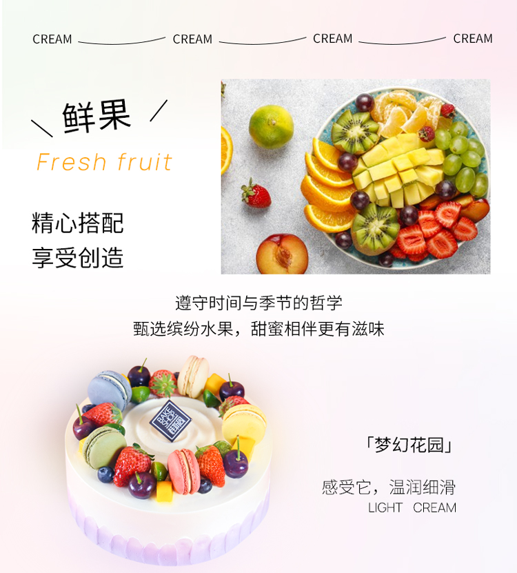【梦幻花园】 时令鲜果生日蛋糕—纯乳脂与牛奶奶油混合,夹层口味升级,细腻香甜