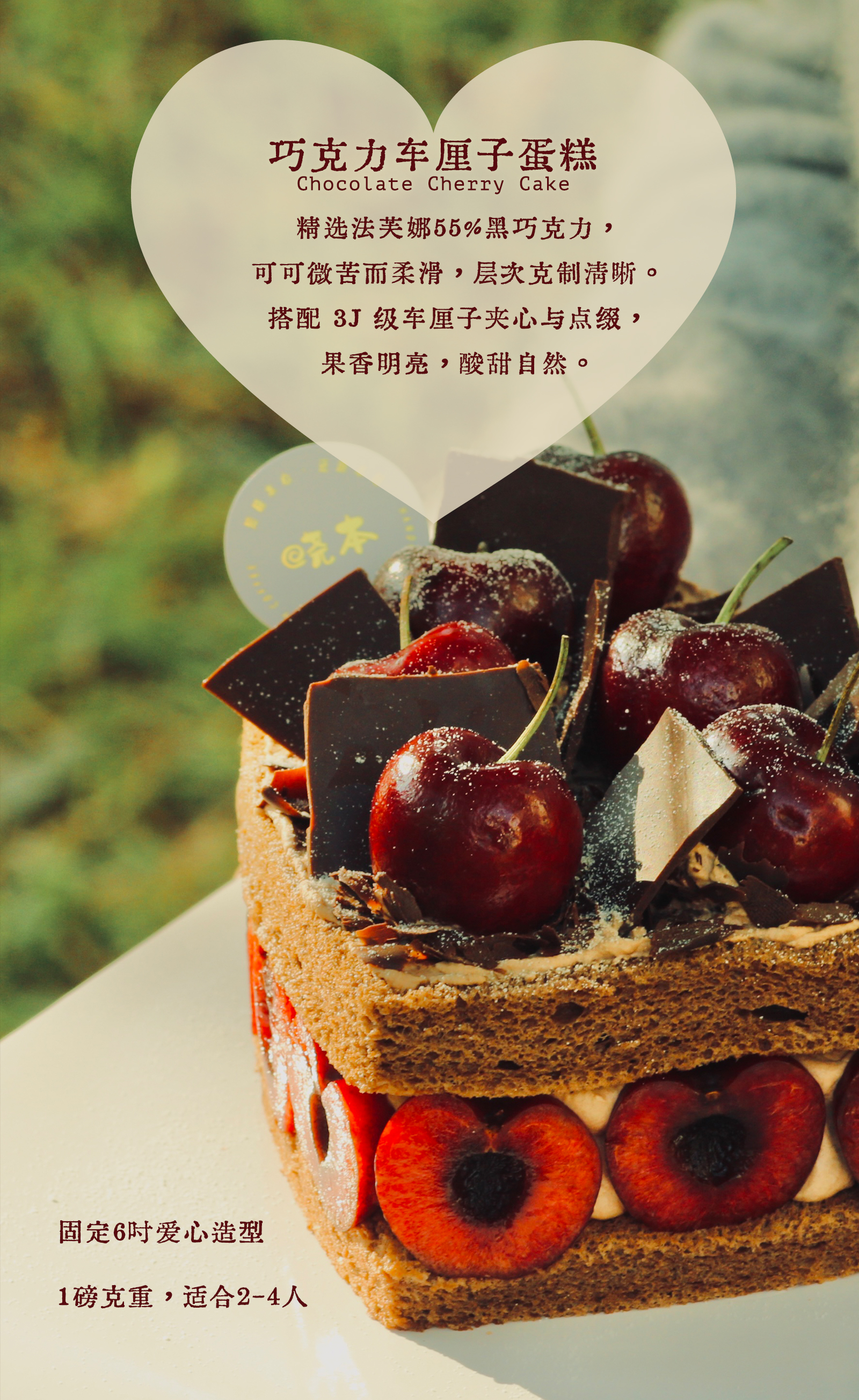 巧克力车厘子裸蛋糕(心型6吋)