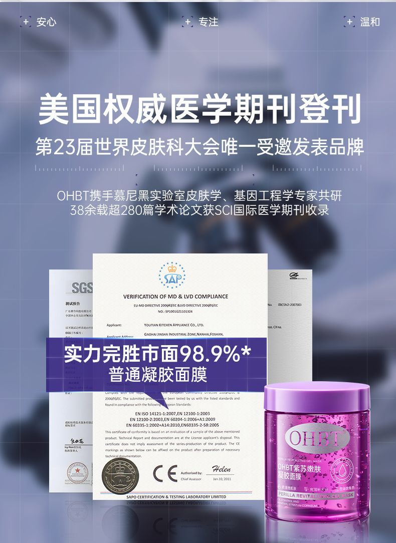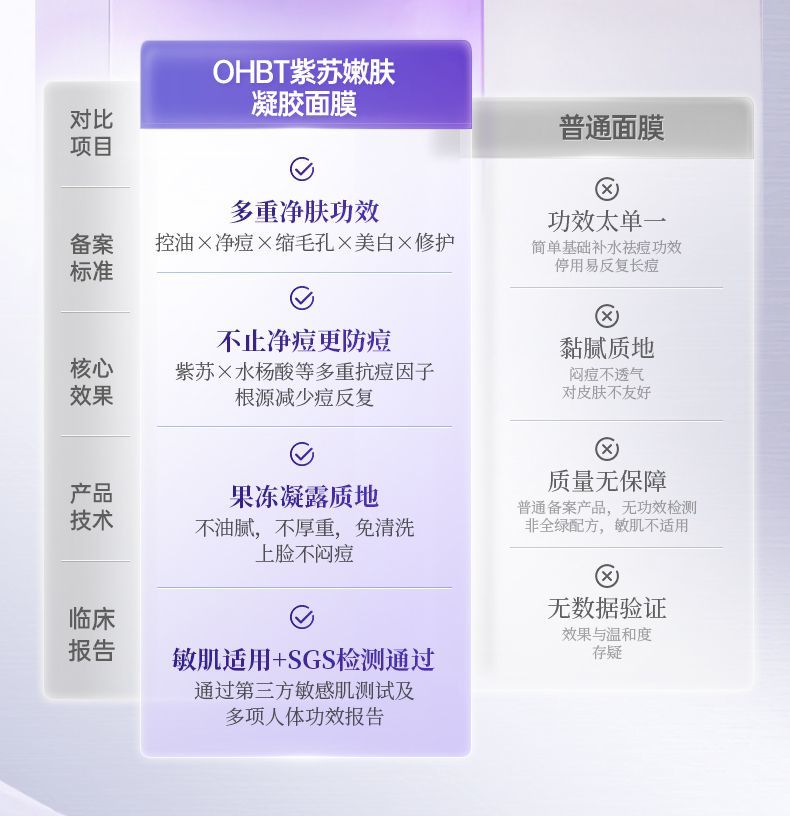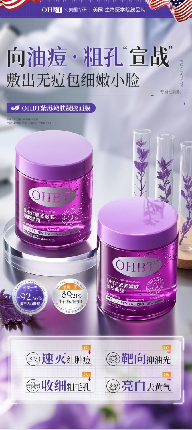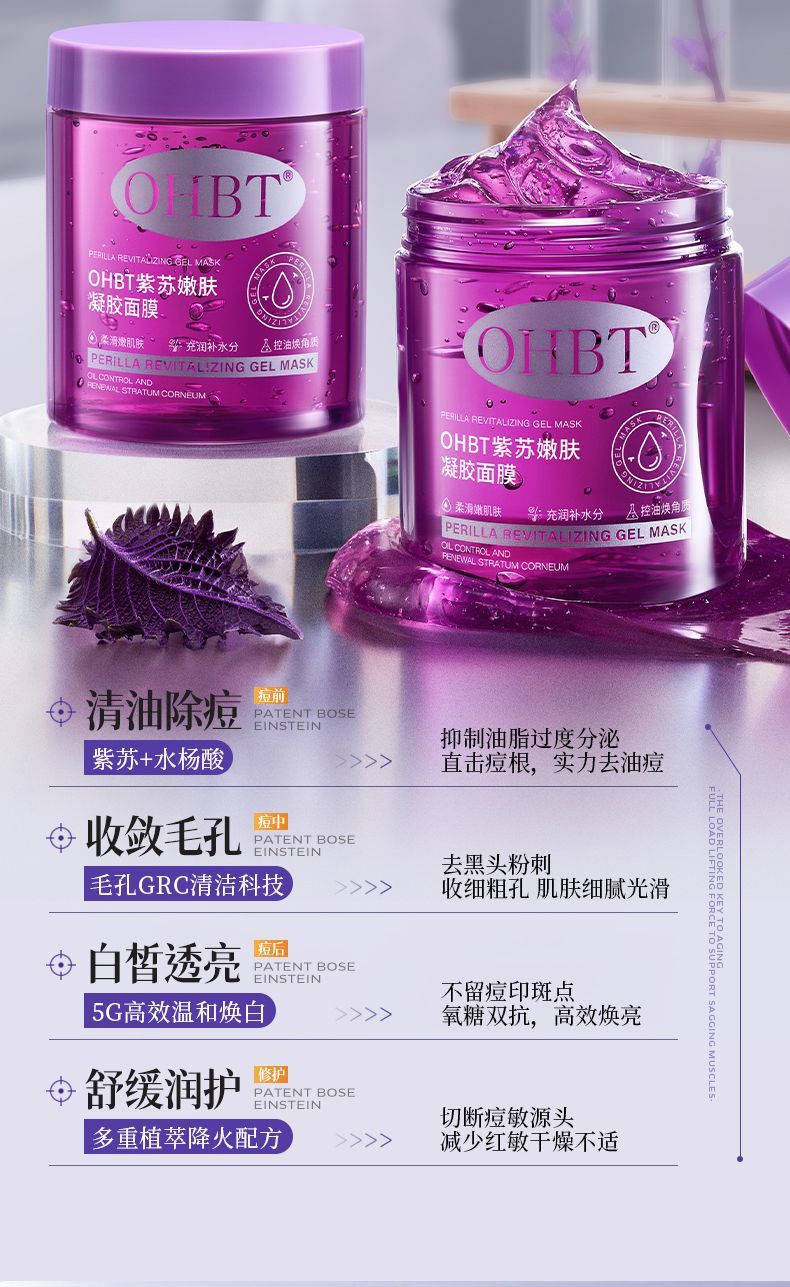 OHBT紫苏凝胶面膜美白祛痘深层补水去黄提亮修护大容量