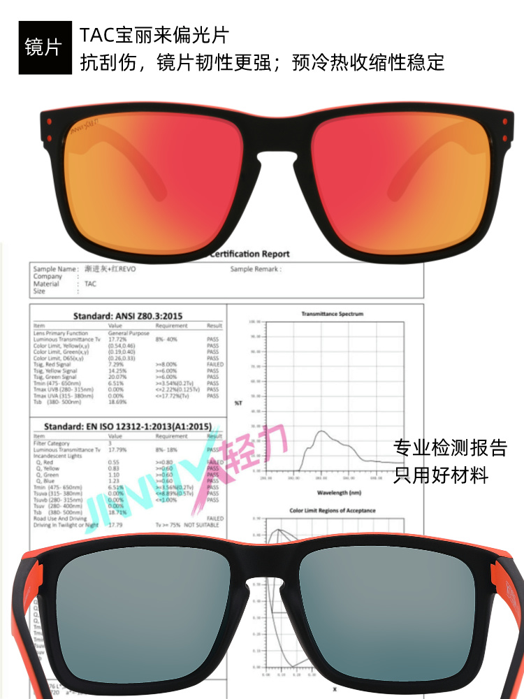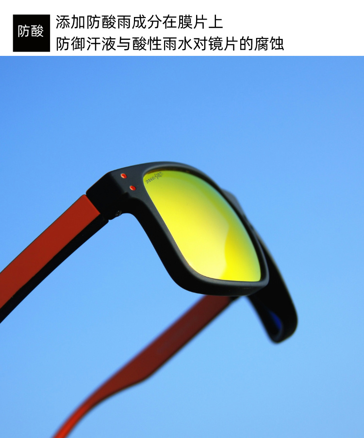 镜片的偏光有偏光膜层,一款镜片是由不同种膜层组成的,镀revo彩膜,是墨镜片里面贵的其中一种,镀revo膜层,为特别功能运动眼镜采用。它是由8-12层极薄的水银镀成的,所以比较贵,减少辐射效果非常好,颜色多彩可配合眼镜的颜色,且有阻水效果,表面光滑,水滴在片上可以迅速化开,不会停留在片上。