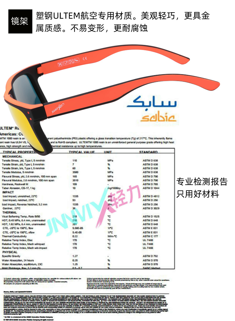 镜架乃塑钢ULTEM航空材料,耐高温材质,整体镜框架构耐高温,不易变形,耐腐蚀。