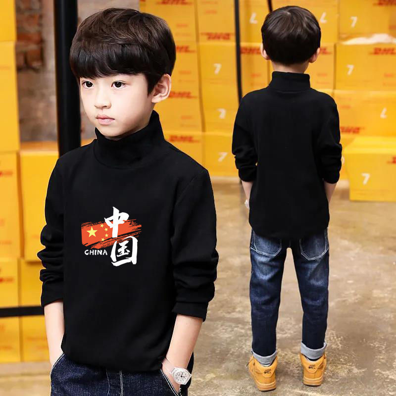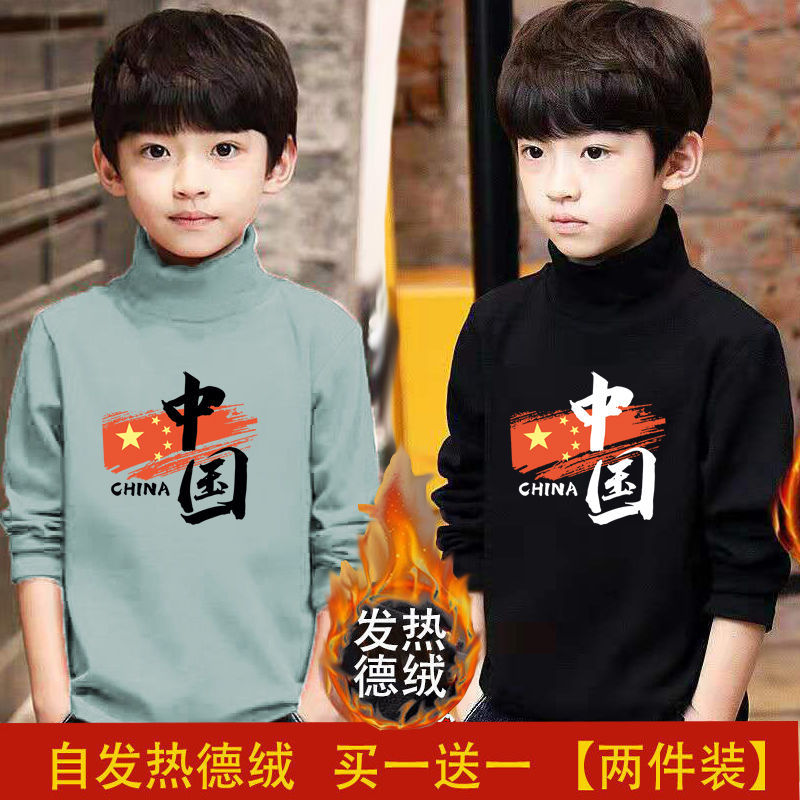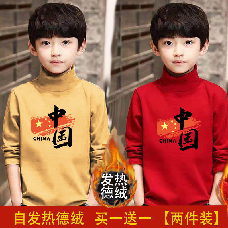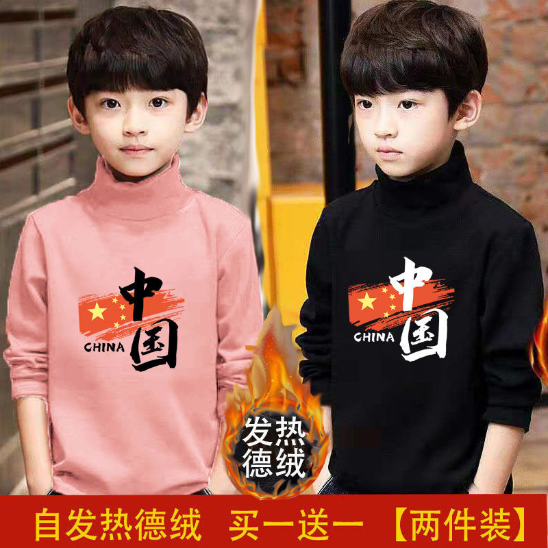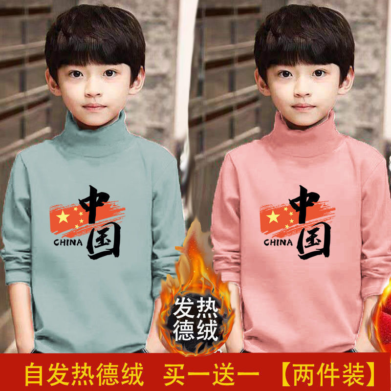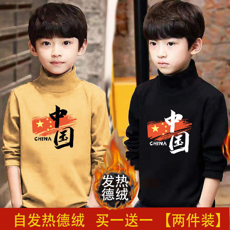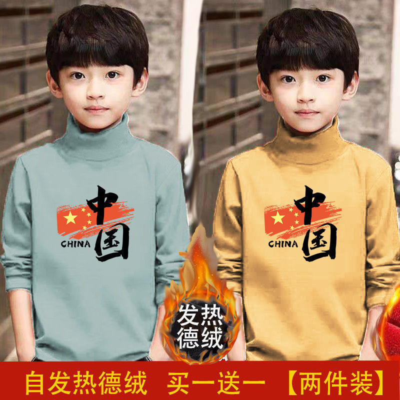 中国风儿童打底衫男童自发热德绒春秋长袖T恤半高领新款保暖上衣