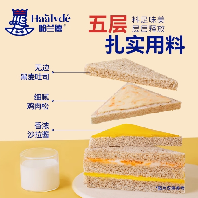 哈兰德 黑麦肉松无蔗糖三明治面包 65g/袋