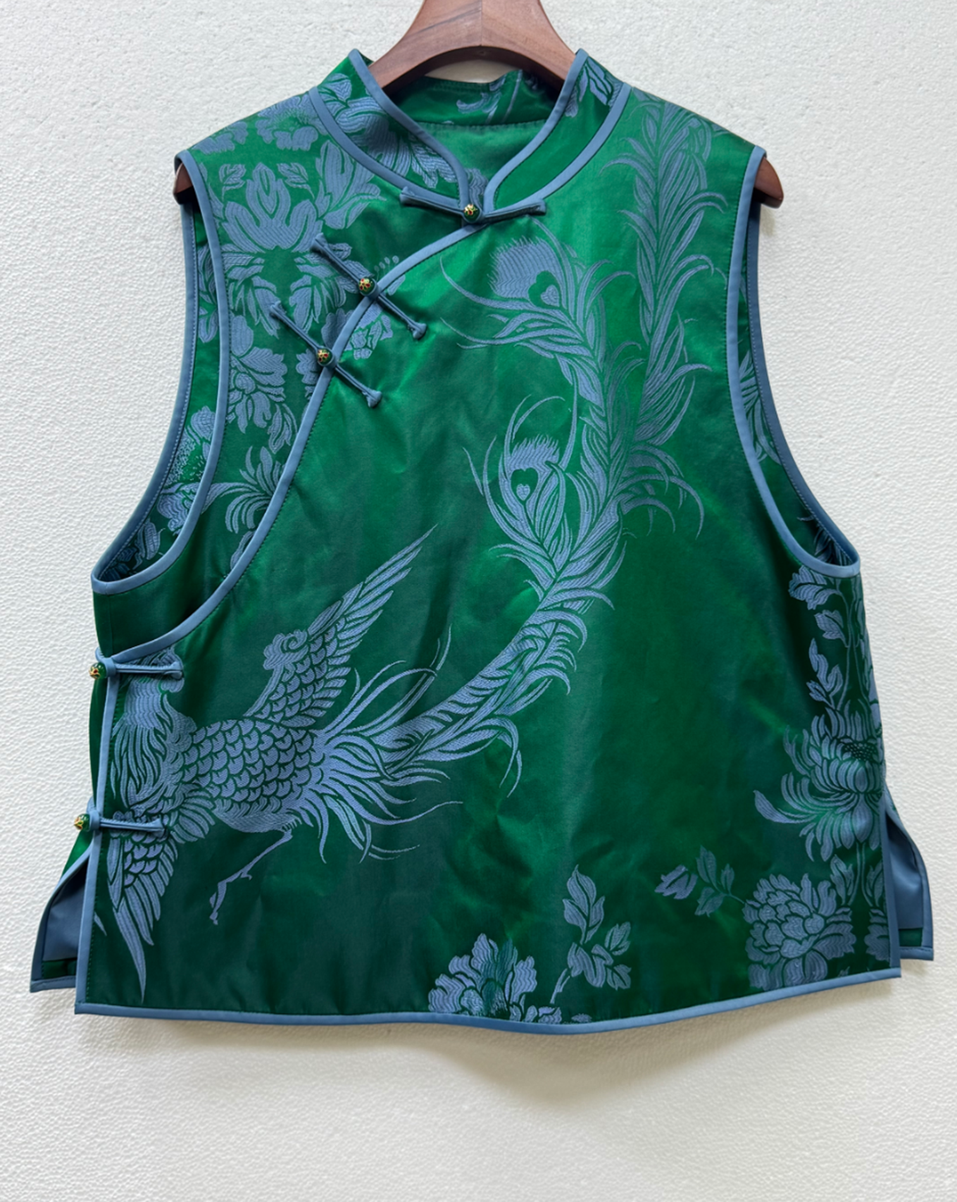 下架|盛唐婧 | 凤凰于飞轻奢时尚新中式老缎斜襟夹棉马甲