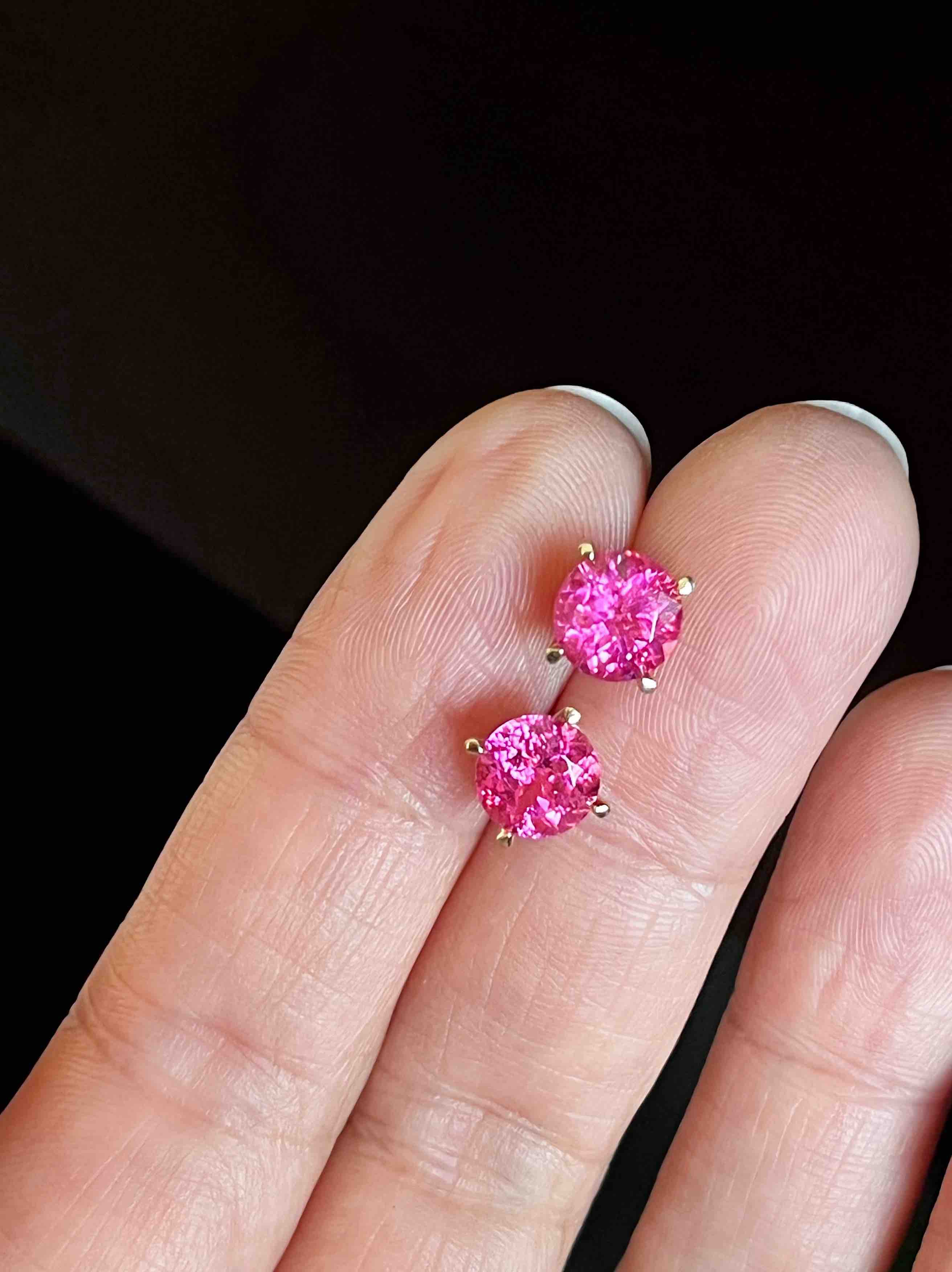 宝石石重:粉色碧玺总重2.10克拉(一对)