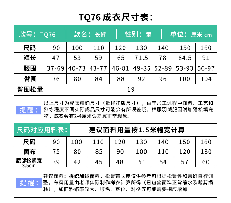 裁缝学苑TQ76 男童加绒裤子纸样儿童新款女童灯芯绒服装打板裁剪